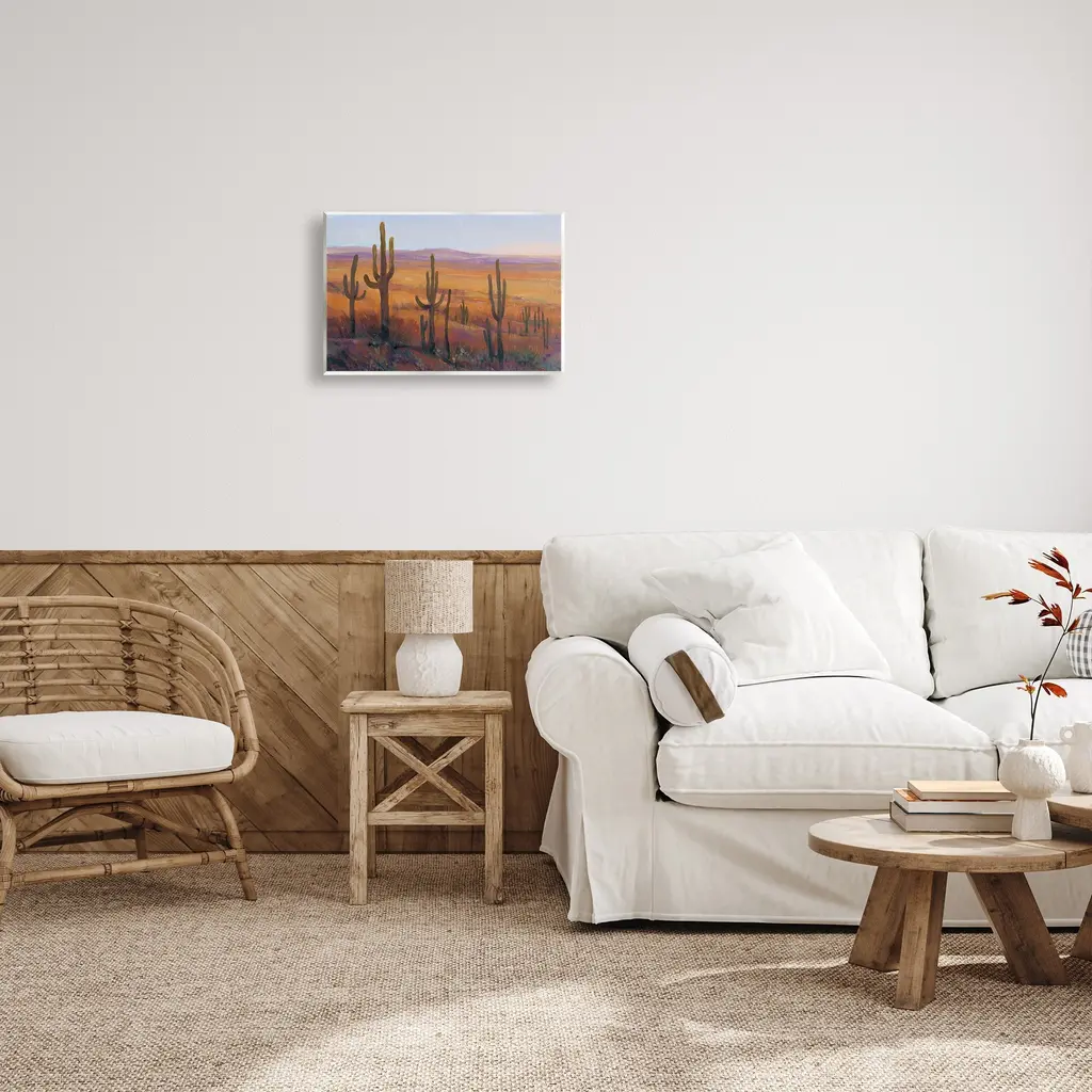 Our wall plaques start as high-quality lithograph prints mounted on durable 0.5-inch thick MDF wood. Each piece is hand finished and comes with a fresh layer of white foil on the sides to give it a crisp, clean look. Plaques arrive ready to hang without installation and come with removable plastic corners to keep them from damage in transit. Stupell Wall Art is made in the USA.Features: Dimensions: 15 x 0.5 x 10 InchesWall Plaque Product Sizes Include 15"x10" and 19"x13". All wall plaque products have a 0.5" Depth. Wall Art is Ready to Hang with Hardware Free Hanging. No installation required. For Easy Set Up Lean or Layer Artwork on Shelf or Against Wall.All of our wall plaques start off as high quality lithograph prints that are then mounted on durable 0.5 inch thick MDF wood. Each piece is hand finished and comes with a fresh layer of foil on the sides to give it a crisp clean look. Made In USA.Artwork Relates To: Nature, Scenery, Landscape, Cactus, Plant, Field, Grassland, Desert, Painting, Wilderness, Canyon, Arid VegetationDesign by Tim Otoole