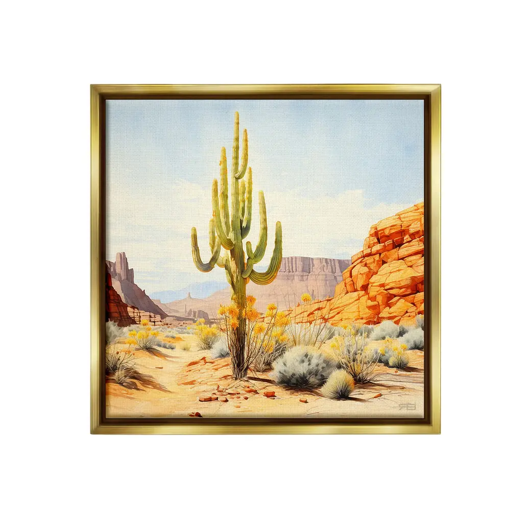 Elevate your home or office to the next level with Stupell Framed Floating Canvas Wall Art. Our premium hand-stretched canvas is mounted securely into a sturdy lightweight frame. The museum-style gap between the wrapped canvas and the box frame gives the illusion of floating artwork. Stupell Wall Art is made in the USA.Features: Dimensions: 18 x 1.7 x 18 Frame, 17 x 1.5 x 17 Canvas ArtFloating Frame Canvas Products are available in sizes 18"x18" and 25"x25". All Floating Frame Canvas Products have a 1.7" Depth.Wall Art is Ready to Hang with Hardware Free Hanging. No Installation required. For Easy Set Up Lean or Layer Artwork on Shelf or Against Wall. Artwork is Permently Fixed into the Frame.Our elevated 1.7" Thick Floating Frame is the perfect complement to our canvas style Wall Art. We use only the highest quality inks in house with industry leading printing solutions. Canvas is hand stretched over a durable wood foundation and then mounted securly into a Modern Box Frame. Made in the USA.Artwork Relates To: Road, Nature, Sky, Scenery, Landscape, Desert, Cactus, Mountain, Vegetation, Botanical, Plant, Canyon, PlateauDesign by RB