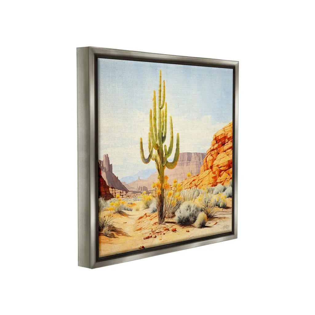 Elevate your home or office to the next level with Stupell Framed Floating Canvas Wall Art. Our premium hand-stretched canvas is mounted securely into a sturdy lightweight frame. The museum-style gap between the wrapped canvas and the box frame gives the illusion of floating artwork. Stupell Wall Art is made in the USA.Features: Dimensions: 18 x 1.7 x 18 Frame, 17 x 1.5 x 17 Canvas ArtFloating Frame Canvas Products are available in sizes 18"x18" and 25"x25". All Floating Frame Canvas Products have a 1.7" Depth.Wall Art is Ready to Hang with Hardware Free Hanging. No Installation required. For Easy Set Up Lean or Layer Artwork on Shelf or Against Wall. Artwork is Permently Fixed into the Frame.Our elevated 1.7" Thick Floating Frame is the perfect complement to our canvas style Wall Art. We use only the highest quality inks in house with industry leading printing solutions. Canvas is hand stretched over a durable wood foundation and then mounted securly into a Modern Box Frame. Made in the USA.Artwork Relates To: Road, Nature, Sky, Scenery, Landscape, Desert, Cactus, Mountain, Vegetation, Botanical, Plant, Canyon, PlateauDesign by RB