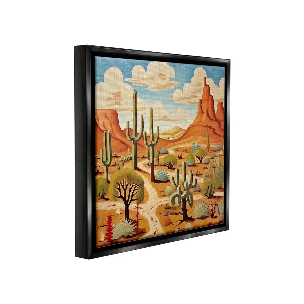 Elevate your home or office to the next level with Stupell Framed Floating Canvas Wall Art. Our premium hand-stretched canvas is mounted securely into a sturdy lightweight frame. The museum-style gap between the wrapped canvas and the box frame gives the illusion of floating artwork. Stupell Wall Art is made in the USA.Features: Dimensions: 18 x 1.7 x 18 Frame, 17 x 1.5 x 17 Canvas ArtFloating Frame Canvas Products are available in sizes 18"x18" and 25"x25". All Floating Frame Canvas Products have a 1.7" Depth.Wall Art is Ready to Hang with Hardware Free Hanging. No Installation required. For Easy Set Up Lean or Layer Artwork on Shelf or Against Wall. Artwork is Permently Fixed into the Frame.Our elevated 1.7" Thick Floating Frame is the perfect complement to our canvas style Wall Art. We use only the highest quality inks in house with industry leading printing solutions. Canvas is hand stretched over a durable wood foundation and then mounted securly into a Modern Box Frame. Made in the USA.Artwork Relates To: Desert, Nature, Cactus, Canyon, Mesa, Path, Cloud, Modern, SouthwesternDesign by Lazar Studio