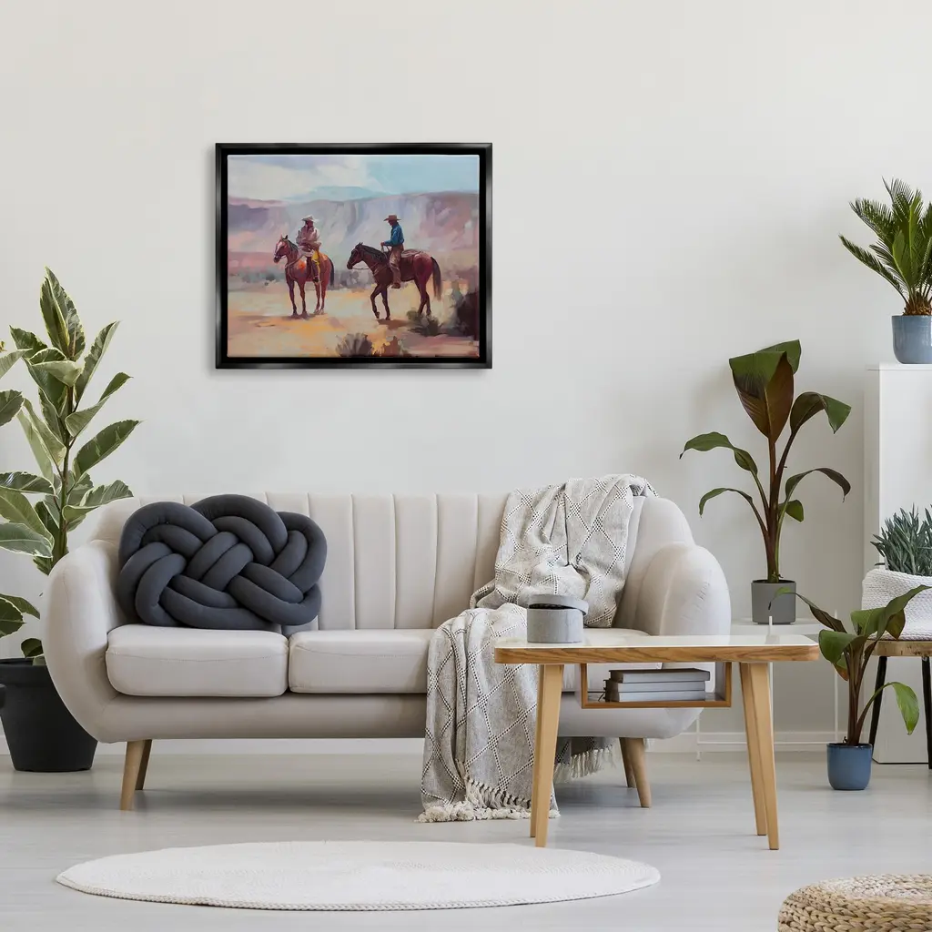 Stupell Desert Cowboys Horses Landscape Framed Floater Canvas Wall Art By Ziwei Li - 30 X 24 - Black