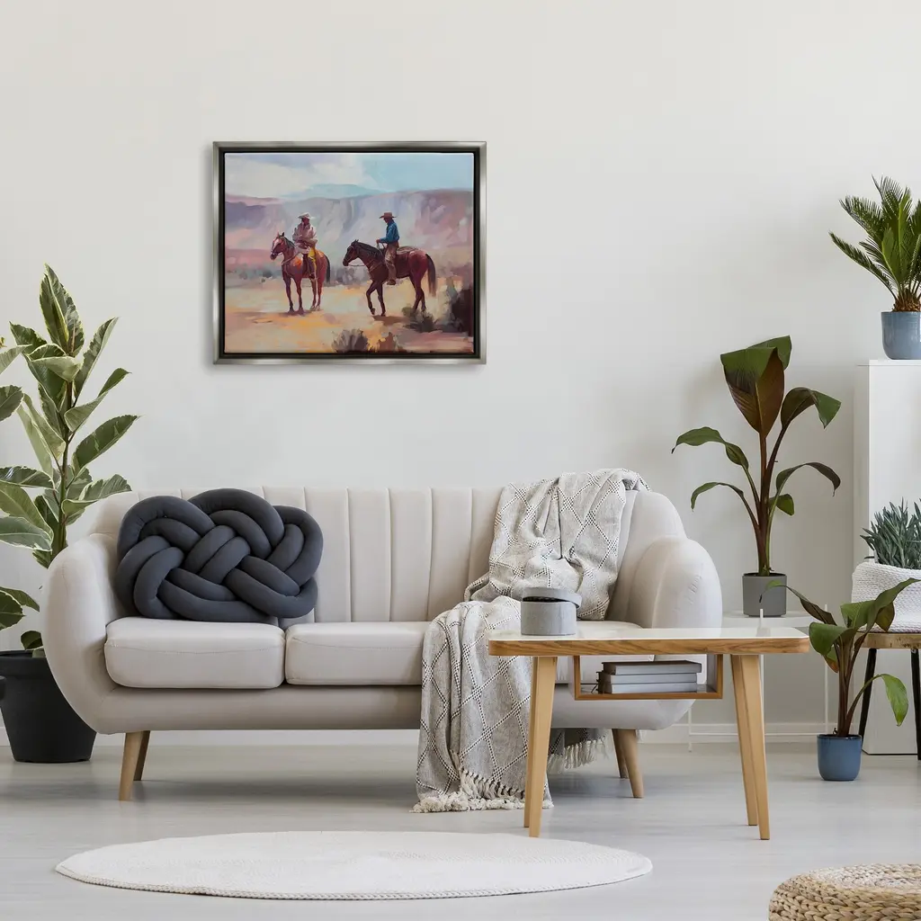 Stupell Desert Cowboys Horses Landscape Framed Floater Canvas Wall Art By Ziwei Li - 30 X 24 - Grey