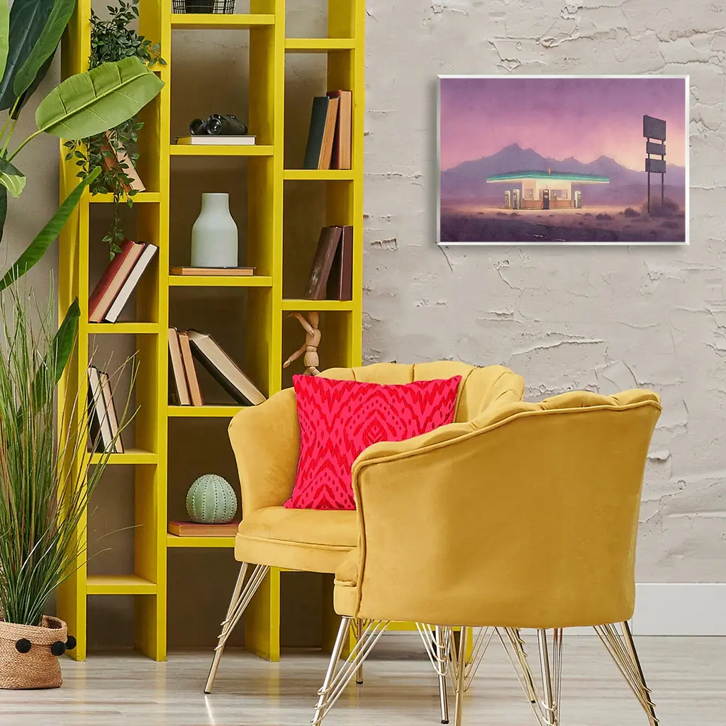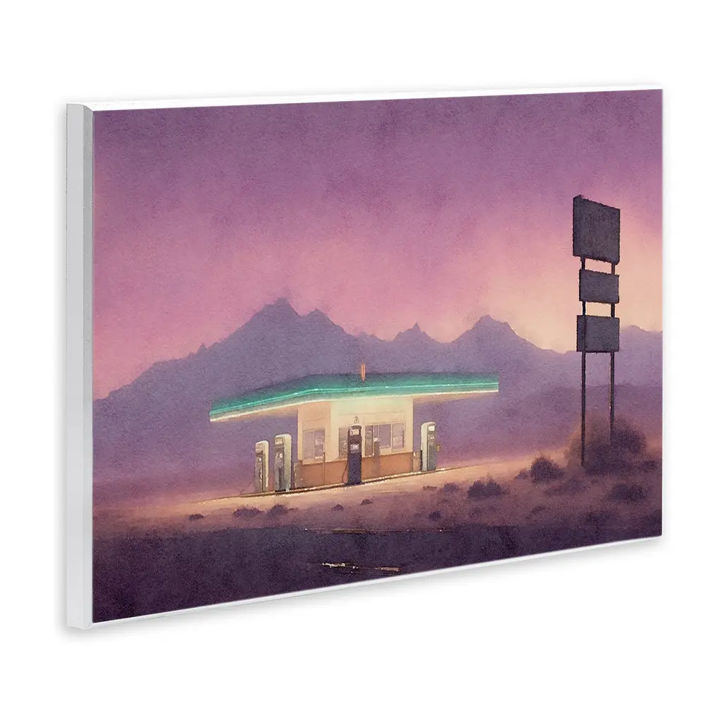 Our wall plaques start as high-quality lithograph prints mounted on durable 0.5-inch thick MDF wood. Each piece is hand finished and comes with a fresh layer of white foil on the sides to give it a crisp, clean look. Plaques arrive ready to hang without installation and come with removable plastic corners to keep them from damage in transit. Stupell Wall Art is made in the USA.Features: Dimensions: 15 x 0.5 x 10 InchesWall Plaque Product Sizes Include 15"x10" and 19"x13". All wall plaque products have a 0.5" Depth. Wall Art is Ready to Hang with Hardware Free Hanging. No installation required. For Easy Set Up Lean or Layer Artwork on Shelf or Against Wall.All of our wall plaques start off as high quality lithograph prints that are then mounted on durable 0.5 inch thick MDF wood. Each piece is hand finished and comes with a fresh layer of foil on the sides to give it a crisp clean look. Made In USA.Artwork Relates To: Building, Gas Station, Landscape, Mountain, Sunset, Sunrise, DesertDesign by Noah Bay