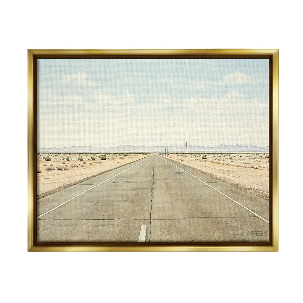 Stupell Desert Horizon Highway Framed Floater Canvas Wall Art Design By Rb - 18 X 18 - Gold