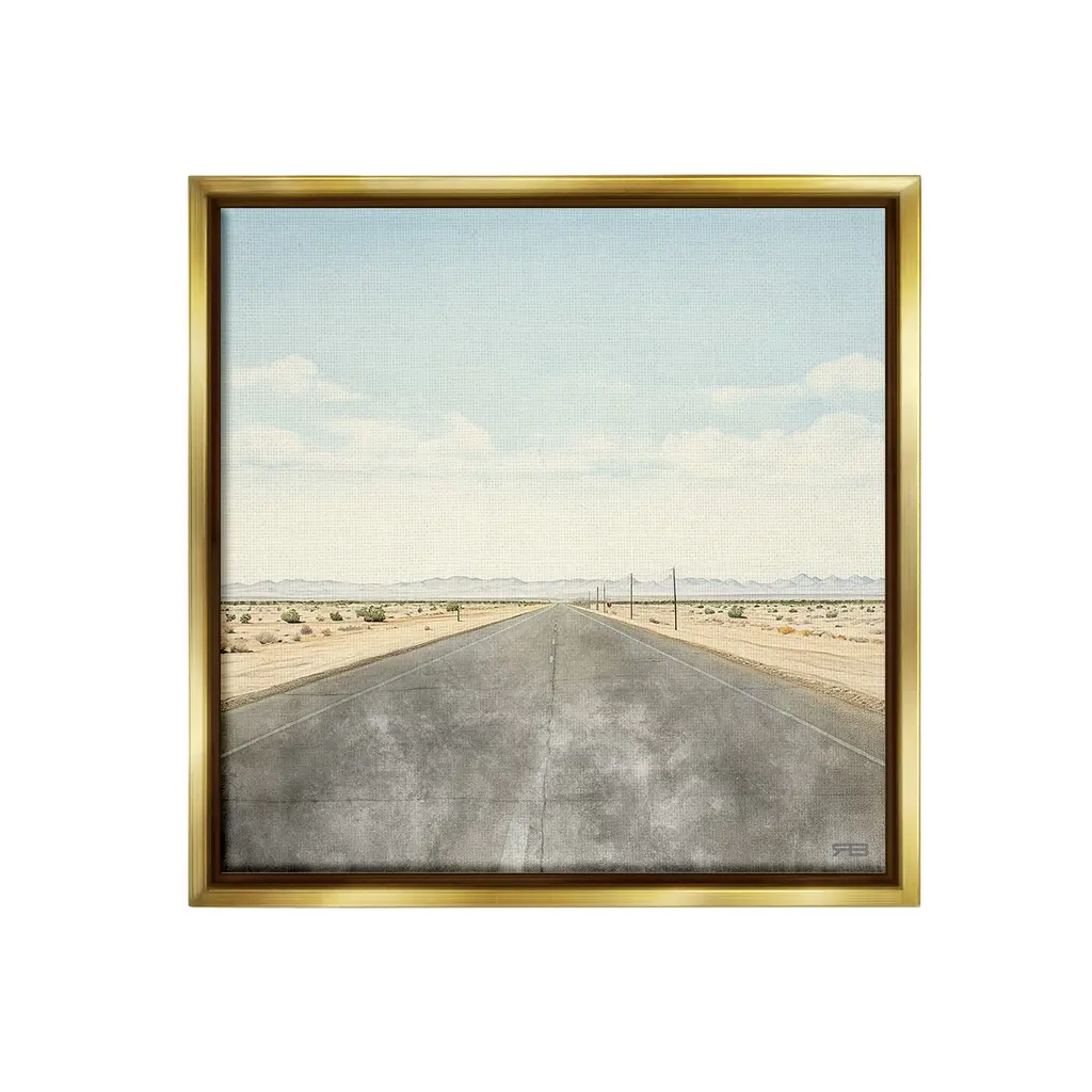 Elevate your home or office to the next level with Stupell Framed Floating Canvas Wall Art. Our premium hand-stretched canvas is mounted securely into a sturdy lightweight frame. The museum-style gap between the wrapped canvas and the box frame gives the illusion of floating artwork. Stupell Wall Art is made in the USA.Features: Dimensions: 18 x 1.7 x 18 Frame, 17 x 1.5 x 17 Canvas ArtFloating Frame Canvas Products are available in sizes 18"x18" and 25"x25". All Floating Frame Canvas Products have a 1.7" Depth.Wall Art is Ready to Hang with Hardware Free Hanging. No Installation required. For Easy Set Up Lean or Layer Artwork on Shelf or Against Wall. Artwork is Permently Fixed into the Frame.Our elevated 1.7" Thick Floating Frame is the perfect complement to our canvas style Wall Art. We use only the highest quality inks in house with industry leading printing solutions. Canvas is hand stretched over a durable wood foundation and then mounted securly into a Modern Box Frame. Made in the USA.Artwork Relates To: Road, Nature, Sky, Freeway, Highway, Ground, Scenery, Landscape, Desert, Cactus, HorizonDesign by RB