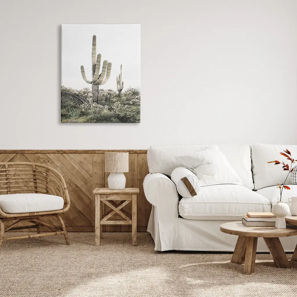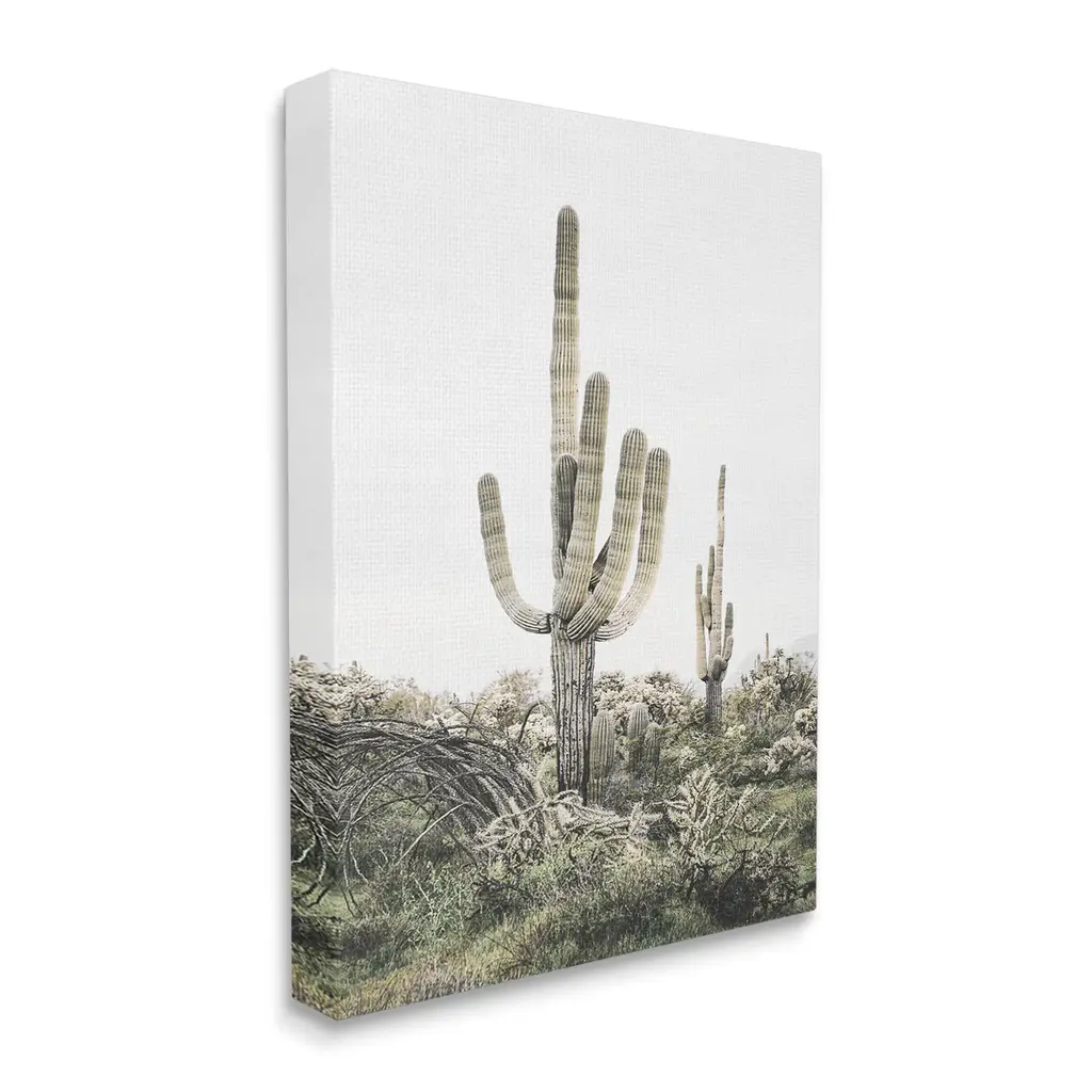 We create our stretched canvas to the highest standards. Using only the highest quality inks and canvas on Mimaki printers, we hand-cut and stretch each piece over a 1.5-inch thick wooden frame for hanging. As a result, the art comes ready to hang on the sturdy ledge with no installation required. Stupell Wall Art is made in the USA.Features: Dimensions: 16 x 1.5 x 20 InchesStretched Canvas Sizes Include Standard: 16 x 1.5 x 20 Large: 20 x 1.5 x 30 X-Large: 30 x 1.5 x 40 Oversized: 36 x 1.5 x 48Wall Art is Ready to Hang with Hardware Free Hanging. No installation required. For Easy Set Up Lean or Layer Artwork on Shelf or Against Wall.Our stretched canvas is created with the highest standards. We use only the highest quality inks and canvas on our in house Mimaki printers, and then hand cut and stretch each piece over a 1.5 inch thick wooden frame for hanging. Made In USA.Artwork Relates To: Cactus, Plant, Desert, Flower, Botanical, LandscapeDesign by Sisi and Seb