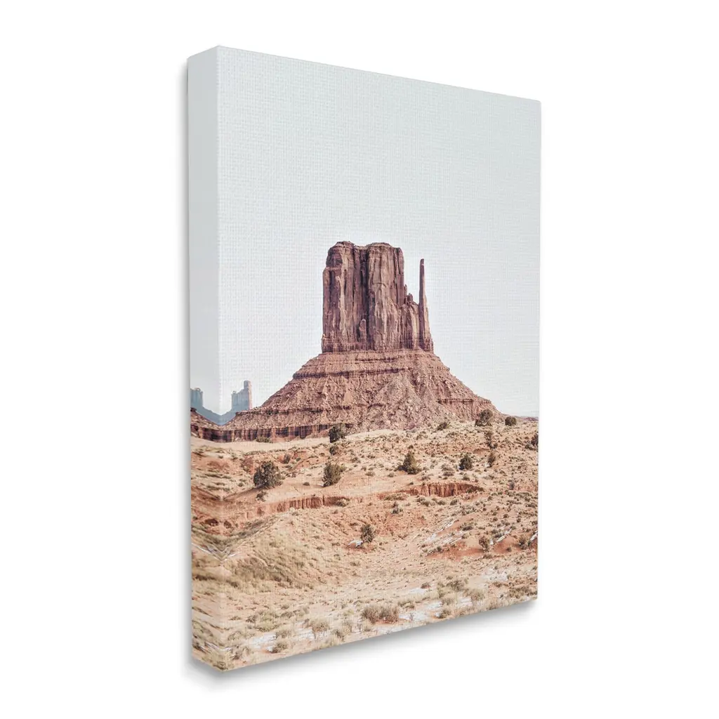 We create our stretched canvas to the highest standards. Using only the highest quality inks and canvas on Mimaki printers, we hand-cut and stretch each piece over a 1.5-inch thick wooden frame for hanging. As a result, the art comes ready to hang on the sturdy ledge with no installation required. Stupell Wall Art is made in the USA.Features: Dimensions: 16 x 1.5 x 20 InchesStretched Canvas Sizes Include Standard: 16 x 1.5 x 20 Large: 20 x 1.5 x 30 X-Large: 30 x 1.5 x 40 Oversized: 36 x 1.5 x 48Wall Art is Ready to Hang with Hardware Free Hanging. No installation required. For Easy Set Up Lean or Layer Artwork on Shelf or Against Wall.Our stretched canvas is created with the highest standards. We use only the highest quality inks and canvas on our in house Mimaki printers, and then hand cut and stretch each piece over a 1.5 inch thick wooden frame for hanging. Made In USA.Artwork Relates To: Mesa, Desert, Cliff, Mountain, PlateauDesign by Sisi and Seb