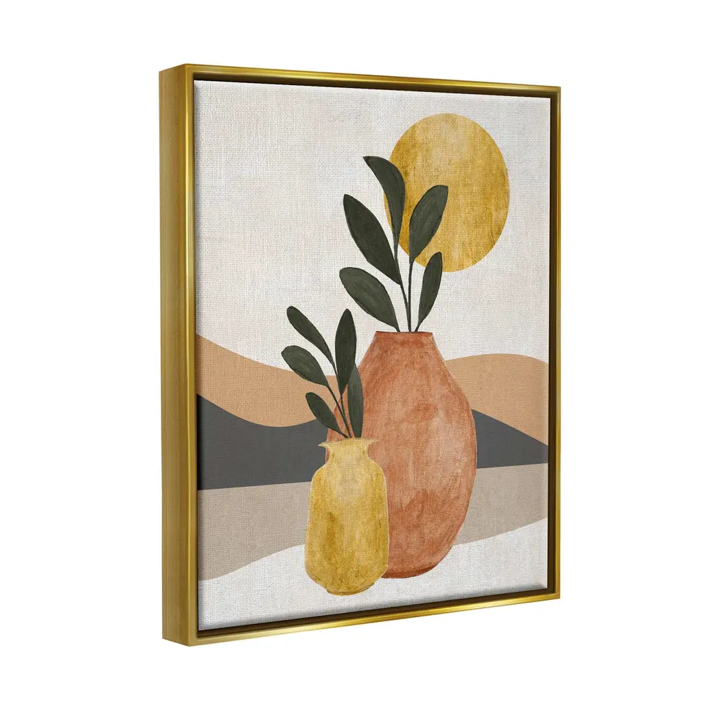 Elevate your home or office to the next level with Stupell Framed Floating Canvas Wall Art. Our premium hand stretched canvas is mounted securly into a sturdy lightweight frame. The museum style gap between wrapped canvas and box frame gives the illusion of floating artwork. Features: Dimensions: 17 x 1.7 x 21 Frame, 16 x 1.5 x 20 Canvas ArtFloating Frame Sizes Include Standard: 17 x 1.7 x 21 Oversized: 25 x 1.7 x 31Wall Art is Ready to Hang - No Installation or Hardware Needed. For Easy Set Up Lean or Layer Artwork on Shelf or Against Wall.Our elevated 1.7" Thick Floating Frame is the perfect complement to our canvas style Wall Art. We use only the highest quality inks in house with industry leading printing solutions. Canvas is hand stretched over a durable wood foundation and then mounted securly into a Modern Box Frame. Made in the USA.Artwork Relates To: Leaf, Plant, Potted Plant, Shapes, Geometric, Flower, Floral, LandscapeDesign by Janet Tava