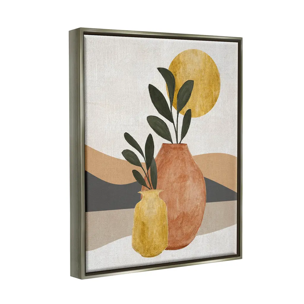 Elevate your home or office to the next level with Stupell Framed Floating Canvas Wall Art. Our premium hand stretched canvas is mounted securly into a sturdy lightweight frame. The museum style gap between wrapped canvas and box frame gives the illusion of floating artwork. Features: Dimensions: 17 x 1.7 x 21 Frame, 16 x 1.5 x 20 Canvas ArtFloating Frame Sizes Include Standard: 17 x 1.7 x 21 Oversized: 25 x 1.7 x 31Wall Art is Ready to Hang - No Installation or Hardware Needed. For Easy Set Up Lean or Layer Artwork on Shelf or Against Wall.Our elevated 1.7" Thick Floating Frame is the perfect complement to our canvas style Wall Art. We use only the highest quality inks in house with industry leading printing solutions. Canvas is hand stretched over a durable wood foundation and then mounted securly into a Modern Box Frame. Made in the USA.Artwork Relates To: Leaf, Plant, Potted Plant, Shapes, Geometric, Flower, Floral, LandscapeDesign by Janet Tava