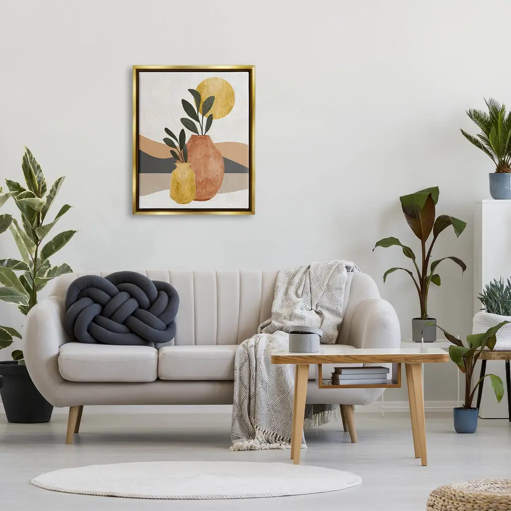 Elevate your home or office to the next level with Stupell Framed Floating Canvas Wall Art. Our premium hand stretched canvas is mounted securly into a sturdy lightweight frame. The museum style gap between wrapped canvas and box frame gives the illusion of floating artwork. Features: Dimensions: 17 x 1.7 x 21 Frame, 16 x 1.5 x 20 Canvas ArtFloating Frame Sizes Include Standard: 17 x 1.7 x 21 Oversized: 25 x 1.7 x 31Wall Art is Ready to Hang - No Installation or Hardware Needed. For Easy Set Up Lean or Layer Artwork on Shelf or Against Wall.Our elevated 1.7" Thick Floating Frame is the perfect complement to our canvas style Wall Art. We use only the highest quality inks in house with industry leading printing solutions. Canvas is hand stretched over a durable wood foundation and then mounted securly into a Modern Box Frame. Made in the USA.Artwork Relates To: Leaf, Plant, Potted Plant, Shapes, Geometric, Flower, Floral, LandscapeDesign by Janet Tava