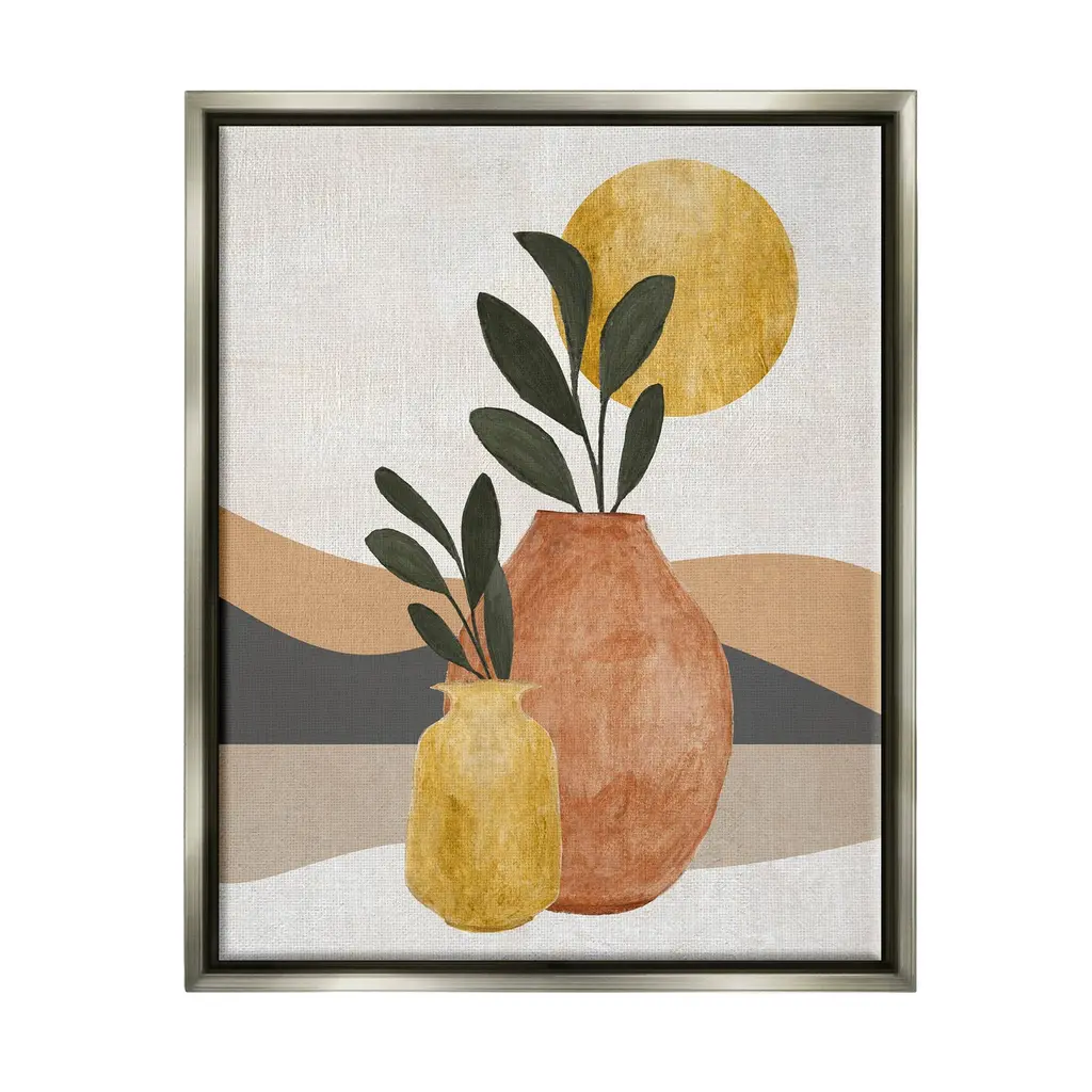 Elevate your home or office to the next level with Stupell Framed Floating Canvas Wall Art. Our premium hand stretched canvas is mounted securly into a sturdy lightweight frame. The museum style gap between wrapped canvas and box frame gives the illusion of floating artwork. Features: Dimensions: 17 x 1.7 x 21 Frame, 16 x 1.5 x 20 Canvas ArtFloating Frame Sizes Include Standard: 17 x 1.7 x 21 Oversized: 25 x 1.7 x 31Wall Art is Ready to Hang - No Installation or Hardware Needed. For Easy Set Up Lean or Layer Artwork on Shelf or Against Wall.Our elevated 1.7" Thick Floating Frame is the perfect complement to our canvas style Wall Art. We use only the highest quality inks in house with industry leading printing solutions. Canvas is hand stretched over a durable wood foundation and then mounted securly into a Modern Box Frame. Made in the USA.Artwork Relates To: Leaf, Plant, Potted Plant, Shapes, Geometric, Flower, Floral, LandscapeDesign by Janet Tava