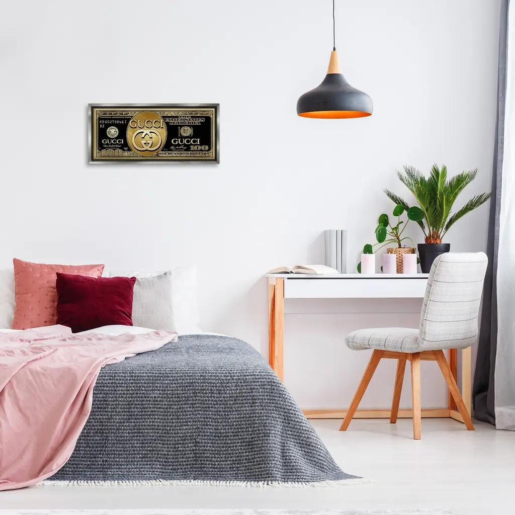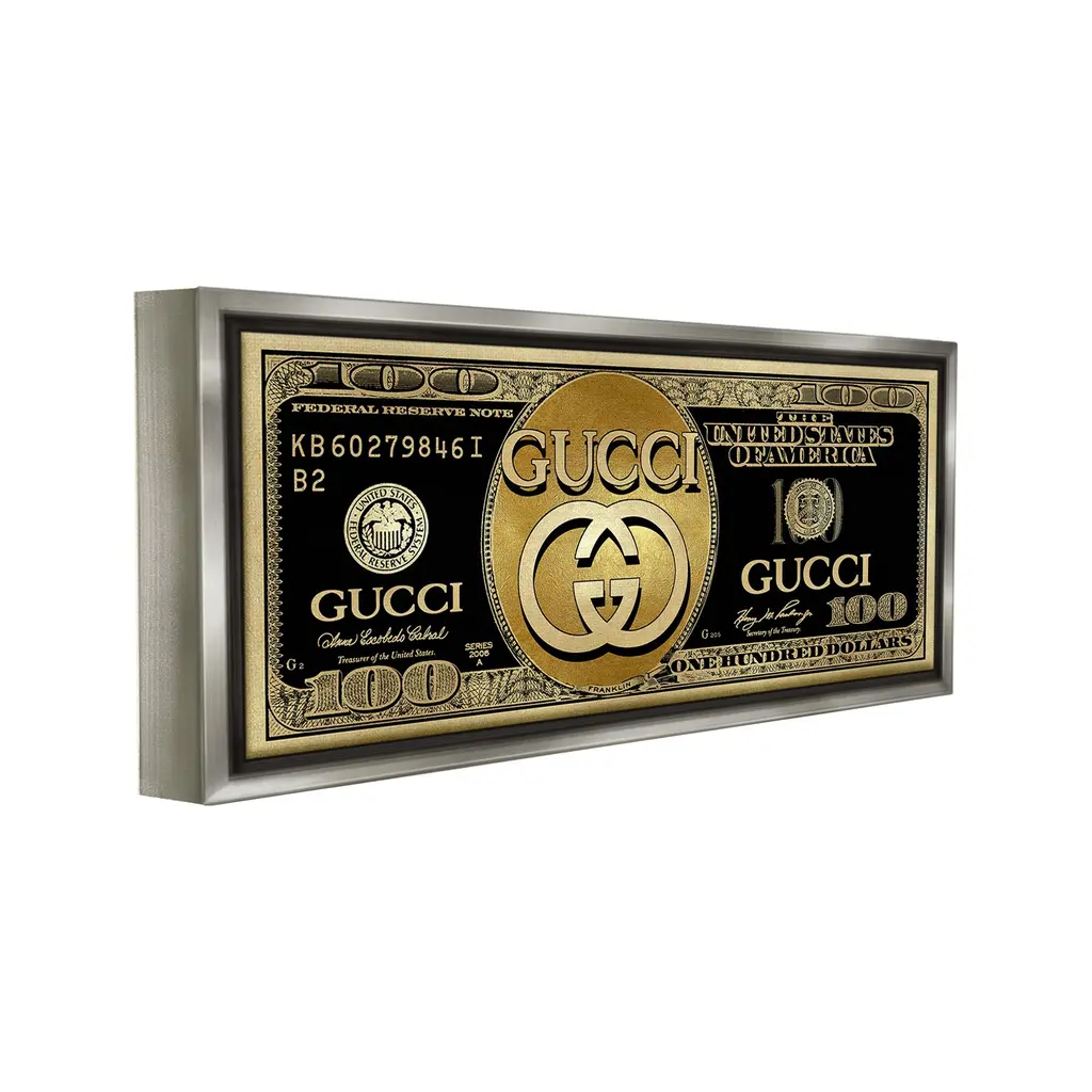 Elevate your home or office to the next level with Stupell Framed Floating Canvas Wall Art. Our premium hand-stretched canvas is mounted securely into a sturdy lightweight frame. The museum-style gap between the wrapped canvas and the box frame gives the illusion of floating artwork. Stupell Wall Art is made in the USA.Features: Dimensions: 25 x 1.7 x 11 Frame, 24 x 1.5 x 10 Canvas ArtFloating Frame Canvas Products are available in sizes 25"x11" and 31"x14". All Floating Frame Canvas Products have a 1.7" Depth.Wall Art is Ready to Hang with Hardware Free Hanging. No Installation required. For Easy Set Up Lean or Layer Artwork on Shelf or Against Wall. Artwork is Permently Fixed into the Frame.Our elevated 1.7" Thick Floating Frame is the perfect complement to our canvas style Wall Art. We use only the highest quality inks in house with industry leading printing solutions. Canvas is hand stretched over a durable wood foundation and then mounted securly into a Modern Box Frame. Made in the USA.Artwork Relates To: Glam, Fashion, Money, Dollar, Designer, BrandDesign by Madeline Blake