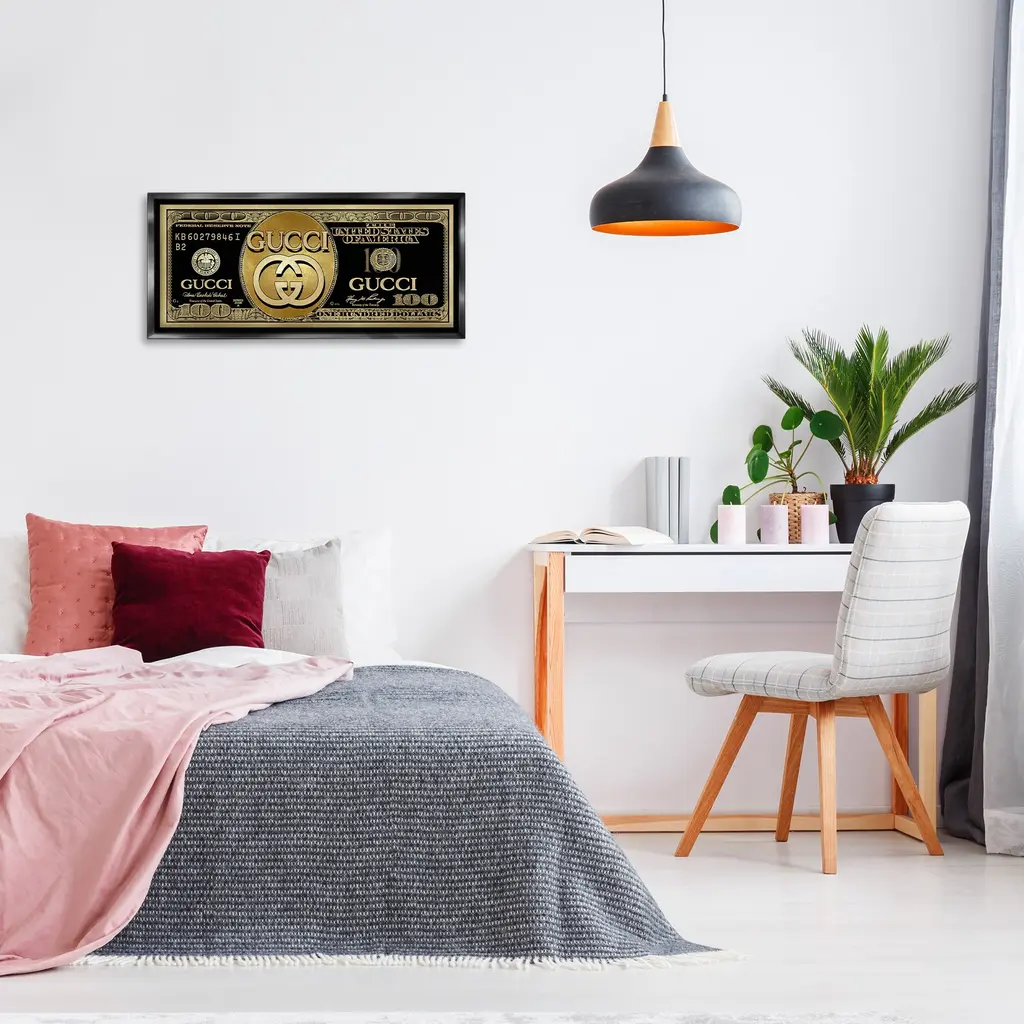 Elevate your home or office to the next level with Stupell Framed Floating Canvas Wall Art. Our premium hand-stretched canvas is mounted securely into a sturdy lightweight frame. The museum-style gap between the wrapped canvas and the box frame gives the illusion of floating artwork. Stupell Wall Art is made in the USA.Features: Dimensions: 25 x 1.7 x 11 Frame, 24 x 1.5 x 10 Canvas ArtFloating Frame Canvas Products are available in sizes 25"x11" and 31"x14". All Floating Frame Canvas Products have a 1.7" Depth.Wall Art is Ready to Hang with Hardware Free Hanging. No Installation required. For Easy Set Up Lean or Layer Artwork on Shelf or Against Wall. Artwork is Permently Fixed into the Frame.Our elevated 1.7" Thick Floating Frame is the perfect complement to our canvas style Wall Art. We use only the highest quality inks in house with industry leading printing solutions. Canvas is hand stretched over a durable wood foundation and then mounted securly into a Modern Box Frame. Made in the USA.Artwork Relates To: Glam, Fashion, Money, Dollar, Designer, BrandDesign by Madeline Blake