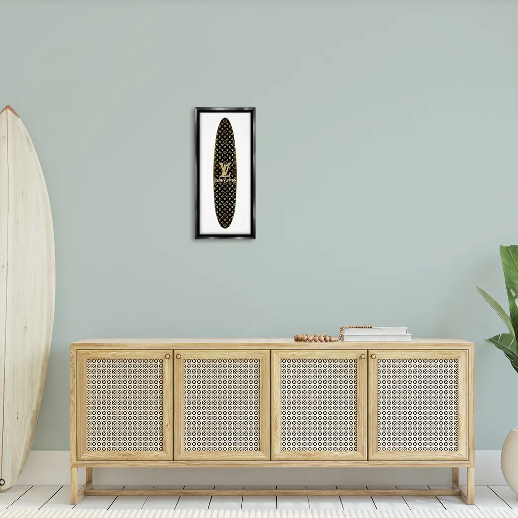 Stupell Designer Brand Surfboard Framed Floater Canvas Wall Art Design By Madeline Blake - 11 X 25 - Black