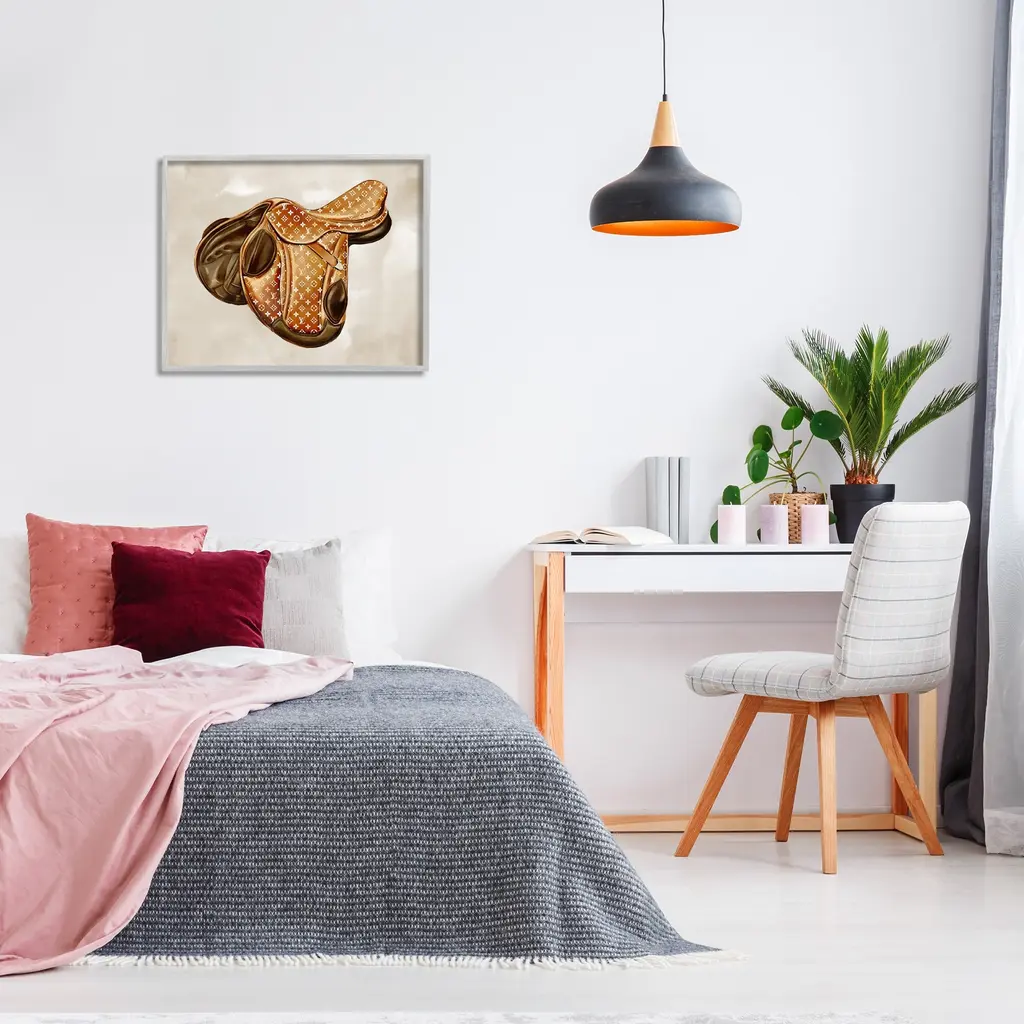 Add dimension to any room with our textured Framed Giclee Artwork. Our framed artwork is securely mounted into a 1.5-inch thick wood grain frame and ready to hang. Frames are available in three alluring styles: black, gray farmhouse and white. In addition, you should check out our oversized options if you want a statement piece. Stupell Wall Art is made in the USA.Features: Dimensions: 14 x 1.5 x 11 FramedFramed Giclee Products are available in the sizes 14"x11", 20"x16" or 30"x24". All Framed Giclee Products have a 1.5" Depth. Wall Art is Ready to Hang with Hardware Free Hanging. No installation required. For Easy Set Up Lean or Layer Artwork on Shelf or Against Wall.Our giclée prints are carefully mounted on a durable MDF backing, and then perfectly finished in a 1.5 inch thick woodgrain frame. Mounted frame colors include black, gray farmhouse and white. Made In USA.Artwork Relates To: Saddle, Glam, Fashion, Designer, Equestrian, Horse, SouthwesternDesign by Ziwei Li