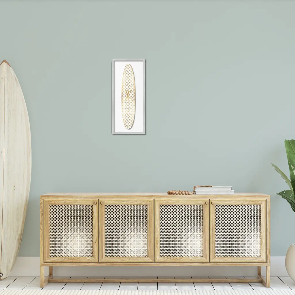 Add dimension to any room with our textured Framed Giclee Artwork. Our framed artwork is securely mounted into a 1.5-inch thick wood grain frame and ready to hang. Frames are available in three alluring styles: black, gray farmhouse and white. In addition, you should check out our oversized options if you want a statement piece. Stupell Wall Art is made in the USA.Features: Dimensions: 10 x 1.5 x 24 FramedFramed Giclee Product Sizes include 10"x24" and 13"x30". All Framed Giclee products have a 1.5" Depth.Wall Art is Ready to Hang with Hardware Free Hanging. No installation required. For Easy Set Up Lean or Layer Artwork on Shelf or Against Wall.Our giclée prints are carefully mounted on a durable MDF backing, and then perfectly finished in a 1.5 inch thick woodgrain frame. Mounted frame colors include black, gray farmhouse and white. Made In USA.Artwork Relates To: Nautical, Sport, Surfing, Surfboard, Glam, Fashion, Pattern, Logo, DesignerDesign by Madeline Blake