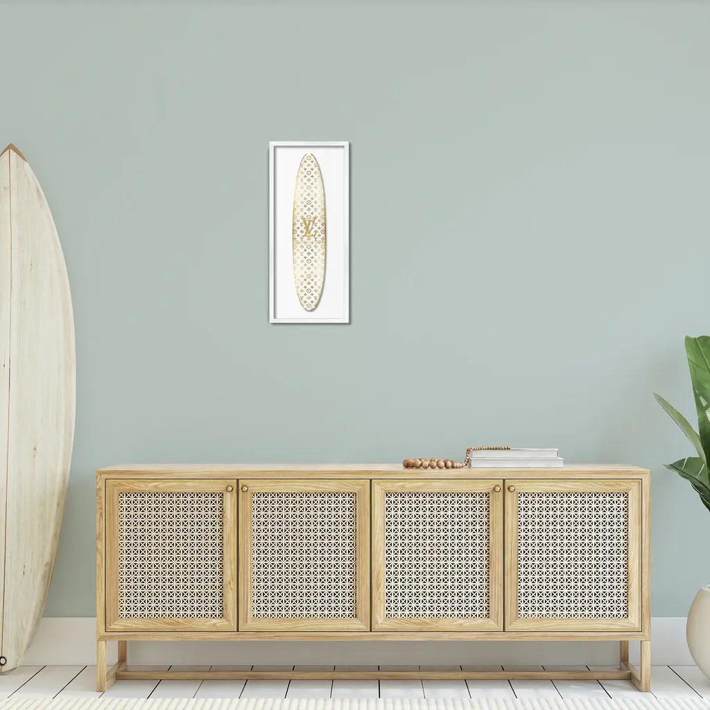 Add dimension to any room with our textured Framed Giclee Artwork. Our framed artwork is securely mounted into a 1.5-inch thick wood grain frame and ready to hang. Frames are available in three alluring styles: black, gray farmhouse and white. In addition, you should check out our oversized options if you want a statement piece. Stupell Wall Art is made in the USA.Features: Dimensions: 10 x 1.5 x 24 FramedFramed Giclee Product Sizes include 10"x24" and 13"x30". All Framed Giclee products have a 1.5" Depth.Wall Art is Ready to Hang with Hardware Free Hanging. No installation required. For Easy Set Up Lean or Layer Artwork on Shelf or Against Wall.Our giclée prints are carefully mounted on a durable MDF backing, and then perfectly finished in a 1.5 inch thick woodgrain frame. Mounted frame colors include black, gray farmhouse and white. Made In USA.Artwork Relates To: Nautical, Sport, Surfing, Surfboard, Glam, Fashion, Pattern, Logo, DesignerDesign by Madeline Blake