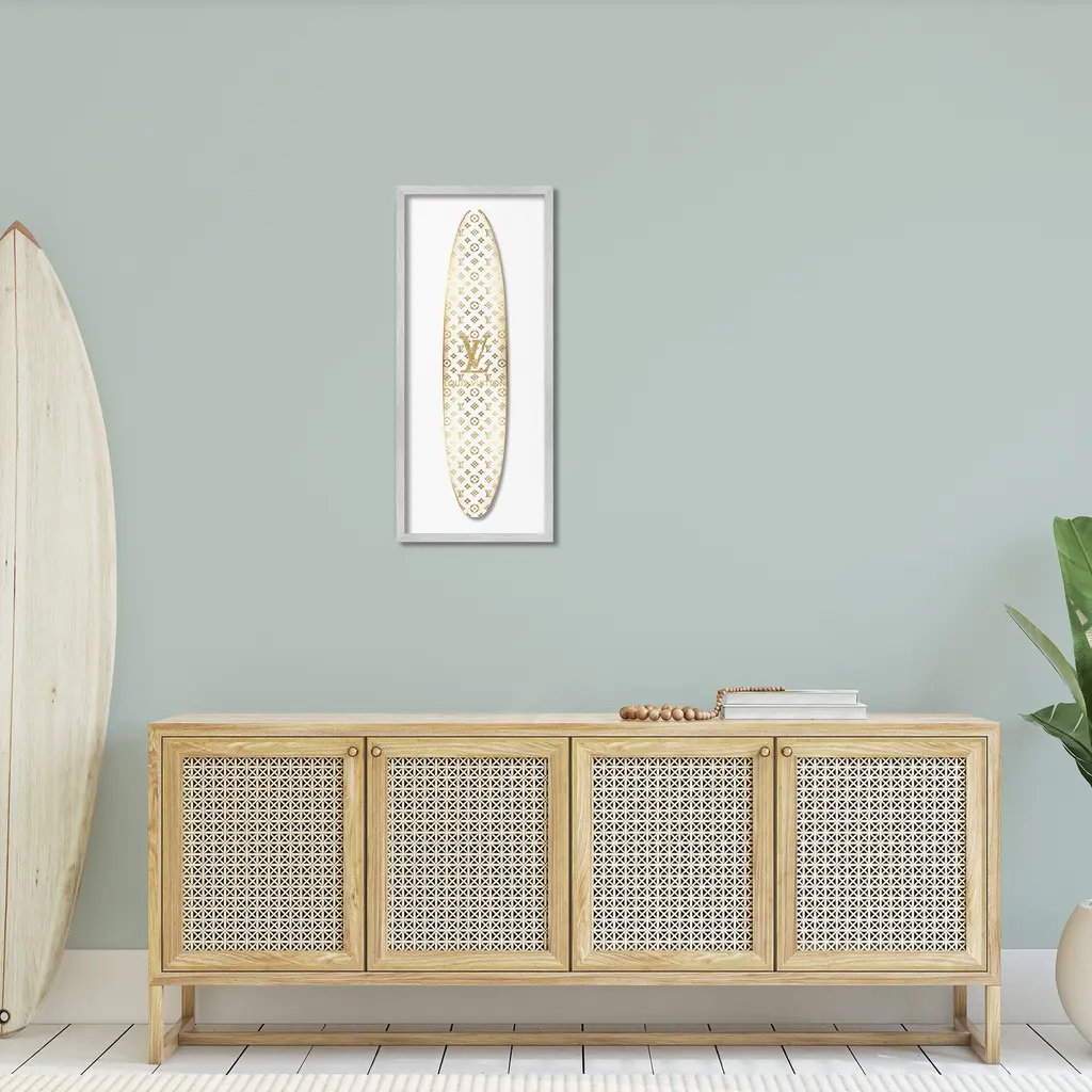 Add dimension to any room with our textured Framed Giclee Artwork. Our framed artwork is securely mounted into a 1.5-inch thick wood grain frame and ready to hang. Frames are available in three alluring styles: black, gray farmhouse and white. In addition, you should check out our oversized options if you want a statement piece. Stupell Wall Art is made in the USA.Features: Dimensions: 10 x 1.5 x 24 FramedFramed Giclee Product Sizes include 10"x24" and 13"x30". All Framed Giclee products have a 1.5" Depth.Wall Art is Ready to Hang with Hardware Free Hanging. No installation required. For Easy Set Up Lean or Layer Artwork on Shelf or Against Wall.Our giclée prints are carefully mounted on a durable MDF backing, and then perfectly finished in a 1.5 inch thick woodgrain frame. Mounted frame colors include black, gray farmhouse and white. Made In USA.Artwork Relates To: Nautical, Sport, Surfing, Surfboard, Glam, Fashion, Pattern, Logo, DesignerDesign by Madeline Blake