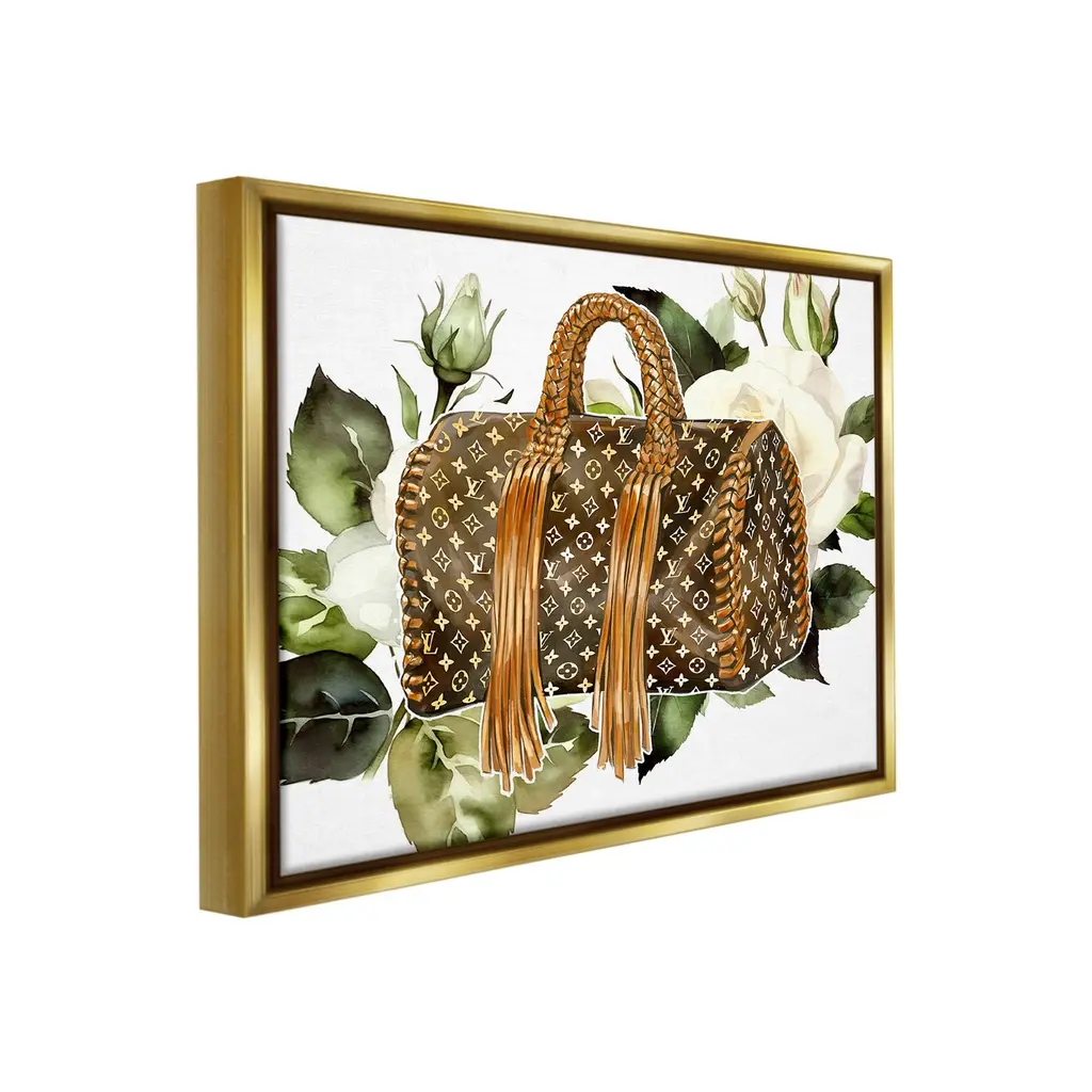Elevate your home or office to the next level with Stupell Framed Floating Canvas Wall Art. Our premium hand-stretched canvas is mounted securely into a sturdy lightweight frame. The museum-style gap between the wrapped canvas and the box frame gives the illusion of floating artwork. Stupell Wall Art is made in the USA.Features: Dimensions: 21 x 1.7 x 17 Frame, 20 x 1.5 x 16 Canvas ArtFloating Frame Canvas Products are available in sizes 21"x17" and 31"x25". All Floating Frame Canvas Products have a 1.7" Depth.Wall Art is Ready to Hang with Hardware Free Hanging. No Installation required. For Easy Set Up Lean or Layer Artwork on Shelf or Against Wall. Artwork is Permently Fixed into the Frame.Our elevated 1.7" Thick Floating Frame is the perfect complement to our canvas style Wall Art. We use only the highest quality inks in house with industry leading printing solutions. Canvas is hand stretched over a durable wood foundation and then mounted securly into a Modern Box Frame. Made in the USA.Artwork Relates To: Accessories, Bag, Handbag, Purse, Boho, Fashion, Glam, Pattern, Designer, Plant, Botanical, Leaf, Rose, FlowerDesign by Ziwei Li