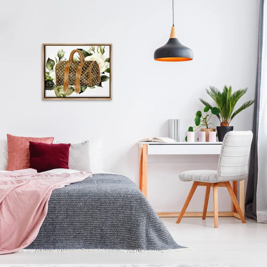 Elevate your home or office to the next level with Stupell Framed Floating Canvas Wall Art. Our premium hand-stretched canvas is mounted securely into a sturdy lightweight frame. The museum-style gap between the wrapped canvas and the box frame gives the illusion of floating artwork. Stupell Wall Art is made in the USA.Features: Dimensions: 21 x 1.7 x 17 Frame, 20 x 1.5 x 16 Canvas ArtFloating Frame Canvas Products are available in sizes 21"x17" and 31"x25". All Floating Frame Canvas Products have a 1.7" Depth.Wall Art is Ready to Hang with Hardware Free Hanging. No Installation required. For Easy Set Up Lean or Layer Artwork on Shelf or Against Wall. Artwork is Permently Fixed into the Frame.Our elevated 1.7" Thick Floating Frame is the perfect complement to our canvas style Wall Art. We use only the highest quality inks in house with industry leading printing solutions. Canvas is hand stretched over a durable wood foundation and then mounted securly into a Modern Box Frame. Made in the USA.Artwork Relates To: Accessories, Bag, Handbag, Purse, Boho, Fashion, Glam, Pattern, Designer, Plant, Botanical, Leaf, Rose, FlowerDesign by Ziwei Li