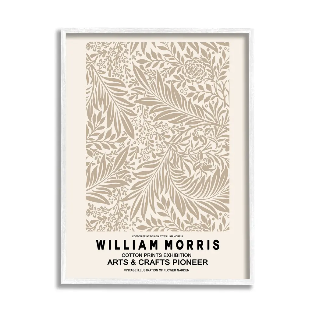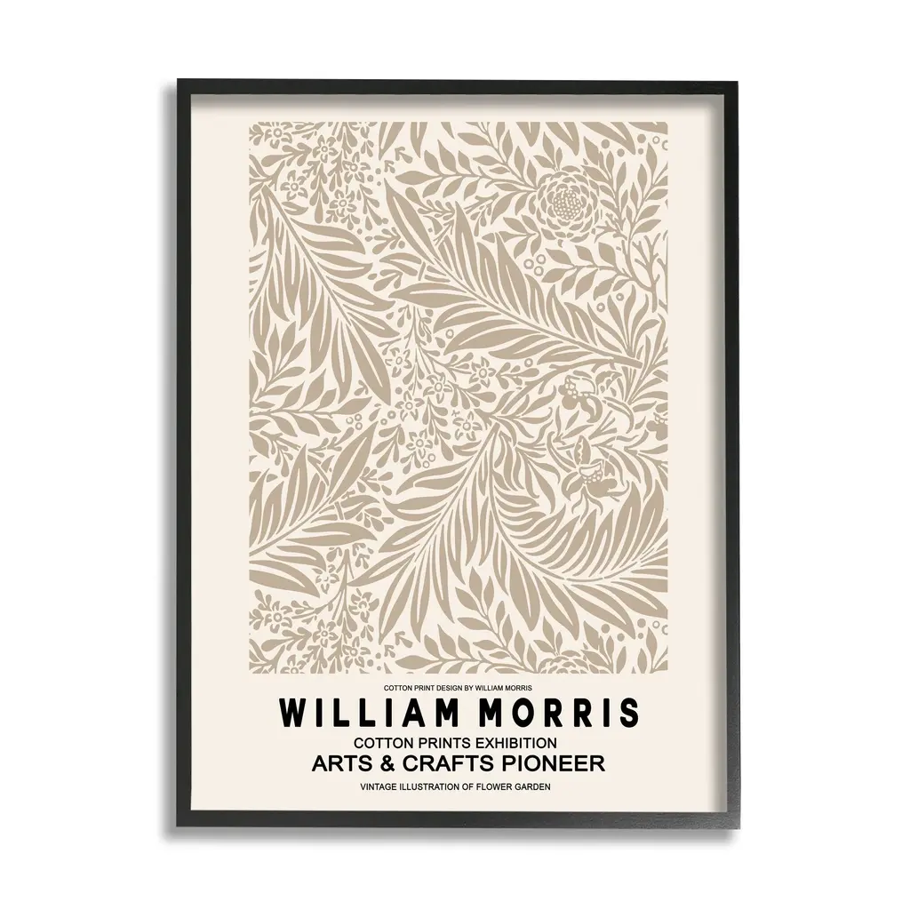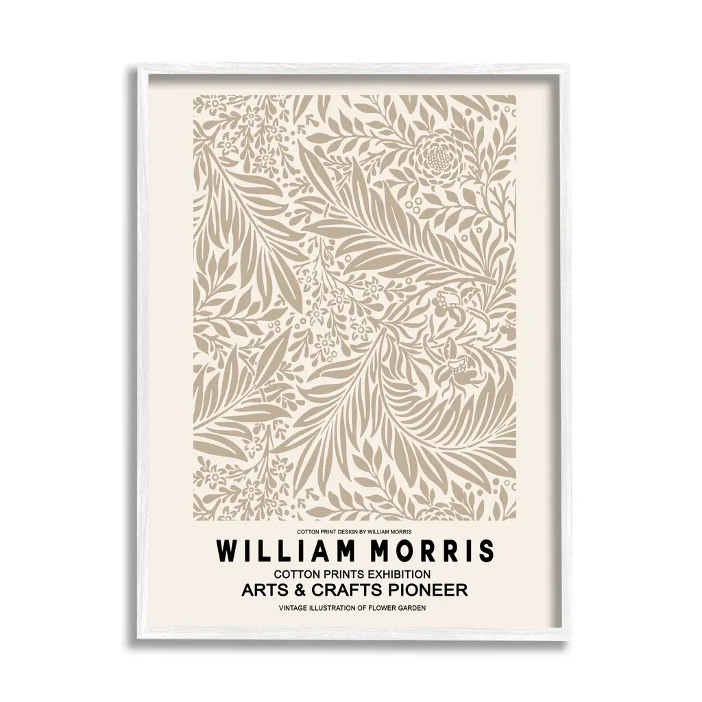 Stupell Detailed Beige Botanical Leaves William Morris Text Framed Wall Art - 11 X 14 - Grey
