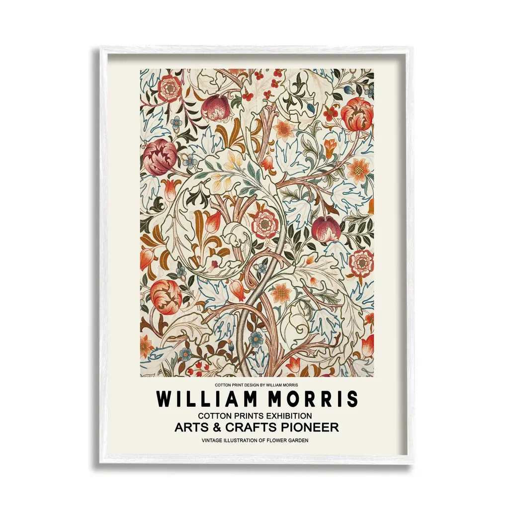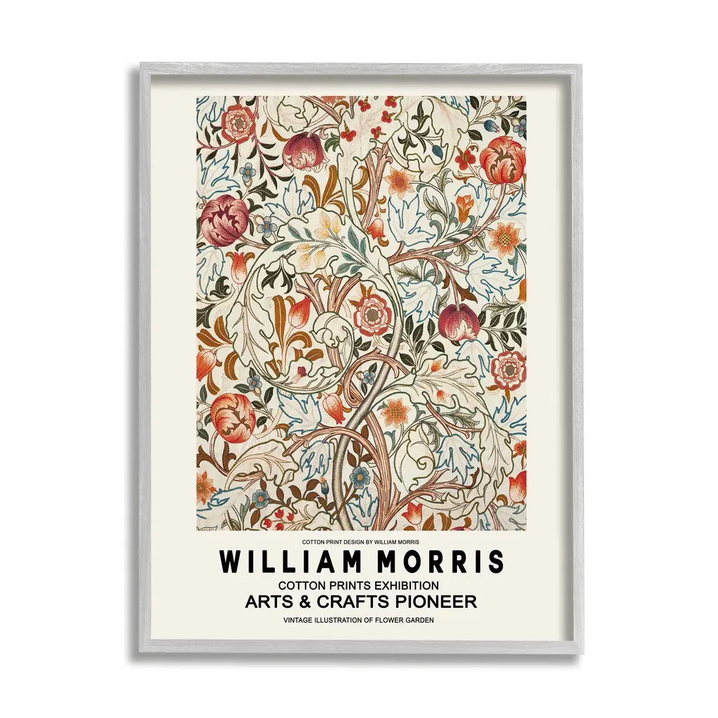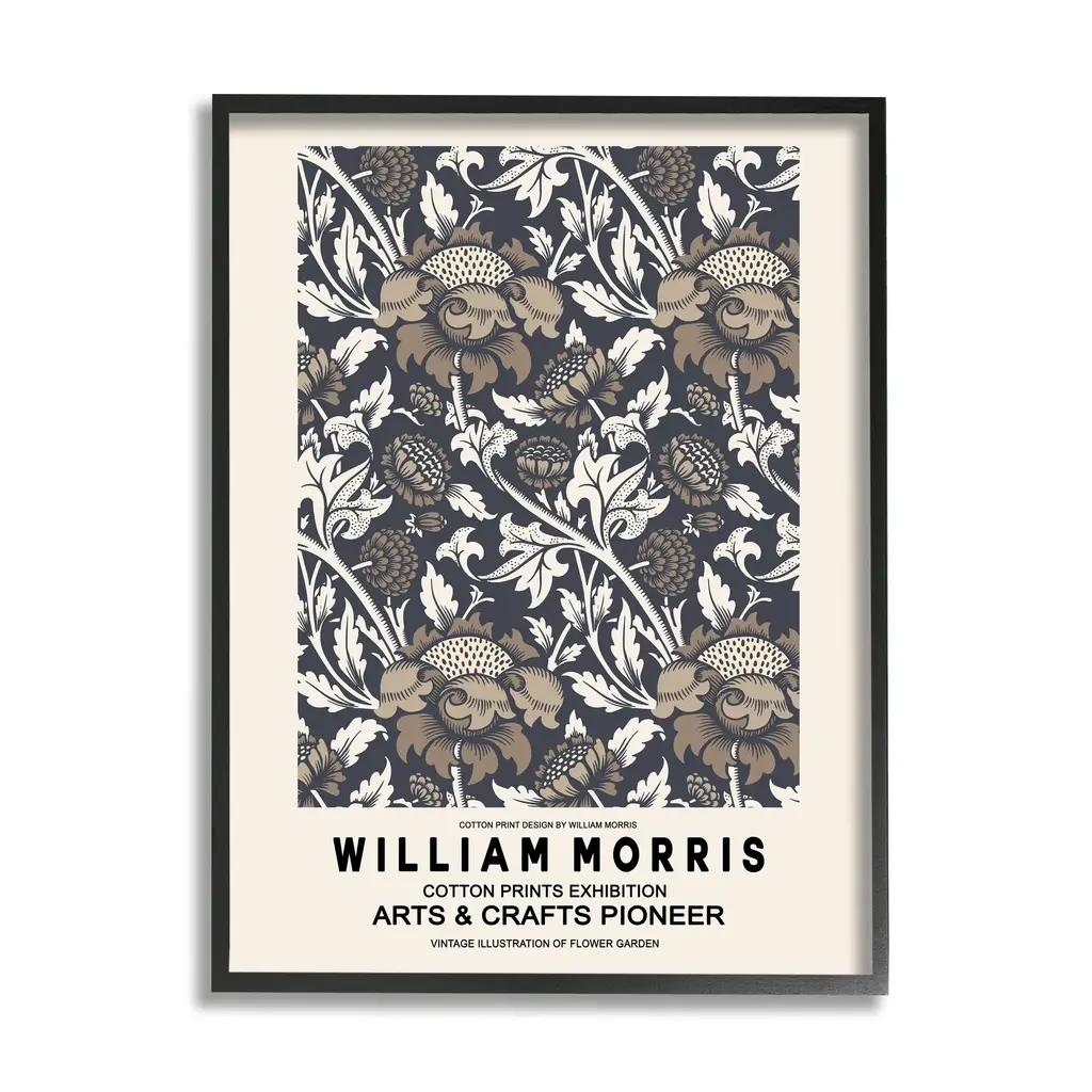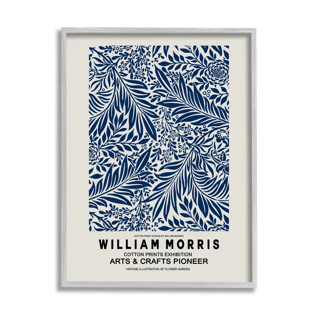 Stupell Detailed Beige Botanical Leaves William Morris Text Framed Wall Art - 11 X 14 - Grey