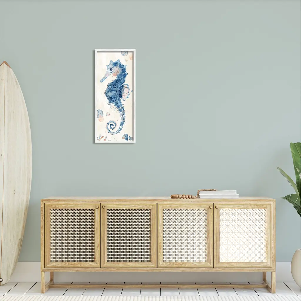 Stupell Detailed Blue Seahorse Underwater Coral Watercolor Framed Wall Art - 13 X 30 - White