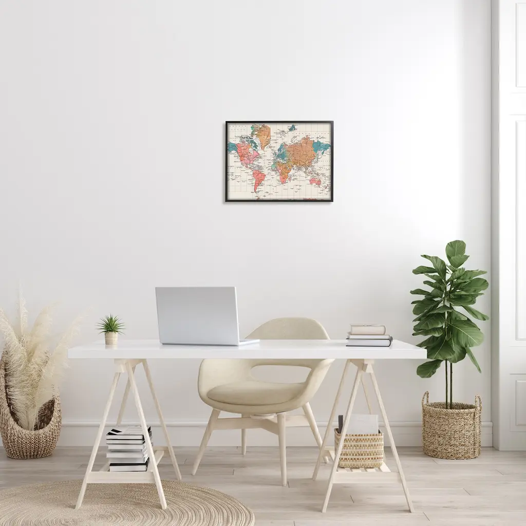 Our Framed Giclee Wall Art adds a touch of class to any space in your home or office. Frames are available in three alluring styles: black, gray farmhouse and white. Our textured artwork will add more depth and dimension to any space. Each piece is mounted with a 1.5 inch thick wood grain frame that is ready to hang! Looking for a statement piece? We have oversized artwork available.Features:Framed Giclee Sizes IncludeStandard: 14 x 1.5 x 11Large: 20 x 1.5 x 16Oversized: 30 x 1.5 x 24Wall Art is Ready to Hang - No Installation or Hardware Needed. For Easy Set Up Lean or Layer Artwork on Shelf or Against Wall.Artwork Relates To: Map, Diagram, Atlas, World map, Countries, ContinentsOur giclee prints are carefully mounted on a durable MDF backing, and then perfectly finished in a 1.5 inch thick woodgrain frame. Mounted frame colors include black, gray farmhouse and white. Made In USA.Design by Elizabeth Medley
