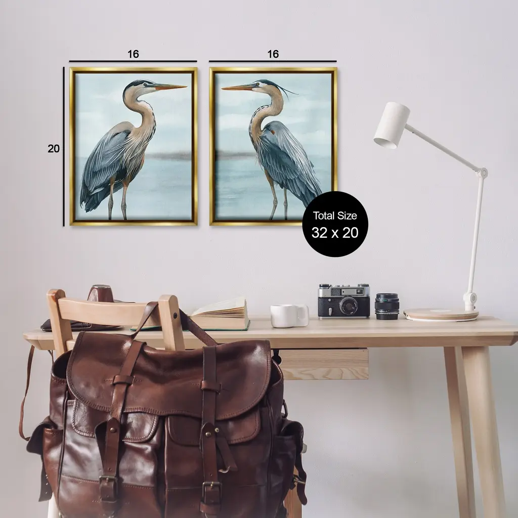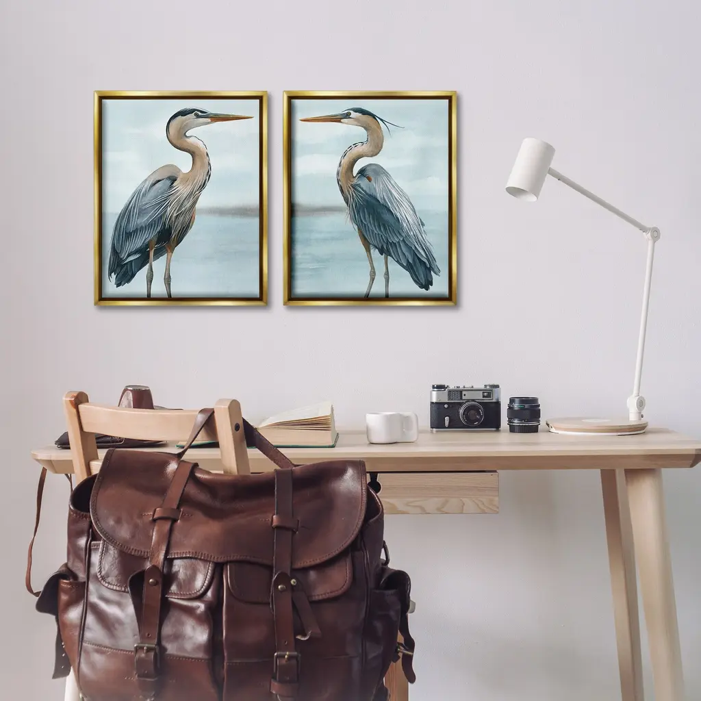 Elevate your home or office to the next level with Stupell Framed Floating Canvas Wall Art. Our premium hand-stretched canvas is mounted securely into a sturdy lightweight frame. The museum-style gap between the wrapped canvas and the box frame gives the illusion of floating artwork. Stupell Wall Art is made in the USA.Features: Dimensions: 2 Piece Set, Each Frame is 17 x 1.7 x 21Two Piece Floater Framed Canvas are available as 17x21 or 25x31 Panels. All Floater Frame Products have a 1.7" Depth.Wall Art is Ready to Hang with Hardware Free Hanging. No Installation required. For Easy Set Up Lean or Layer Artwork on Shelf or Against Wall. Artwork is Permently Fixed into the Frame.Our elevated 1.7" Thick Floating Frame is the perfect complement to our canvas style Wall Art. We use only the highest quality inks in house with industry leading printing solutions. Canvas is hand stretched over a durable wood foundation and then mounted securly into a Modern Box Frame. Made in the USA.Artwork Relates To: Animal, Bird, Waterfowl, Crane Bird, Stork, Beak, Heron, LandscapeDesign by Grace Popp