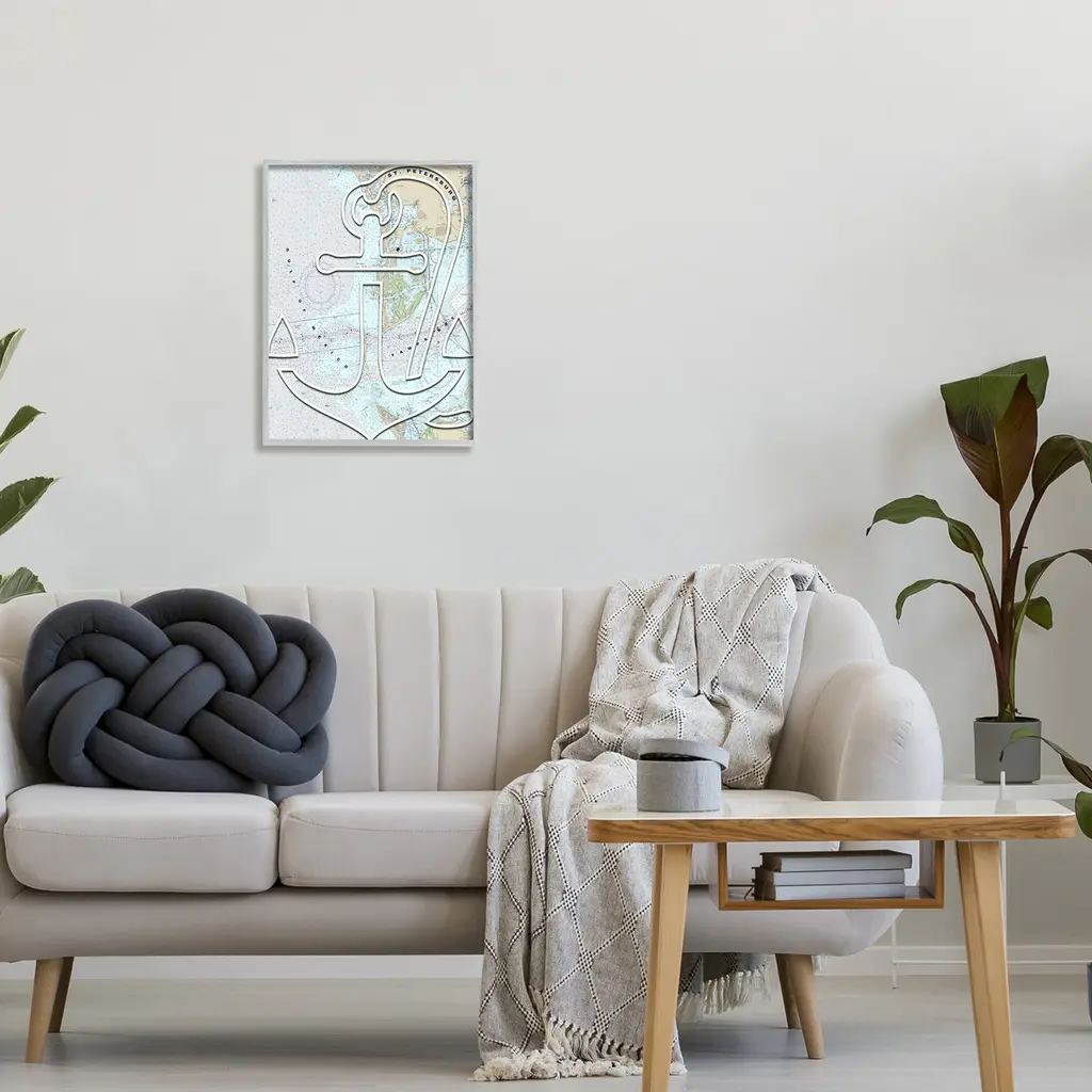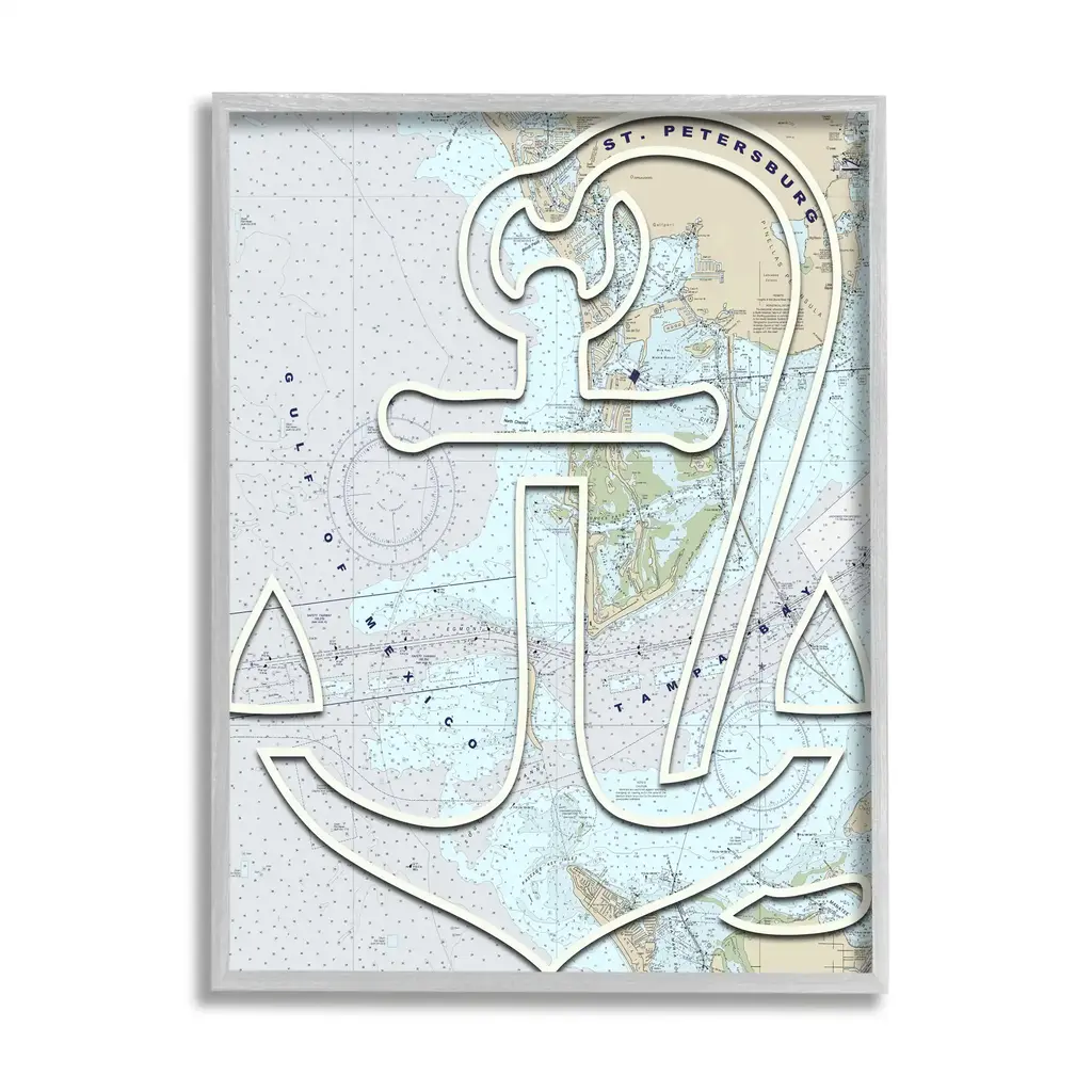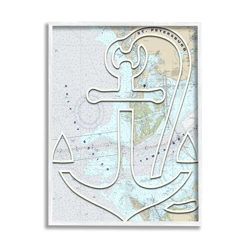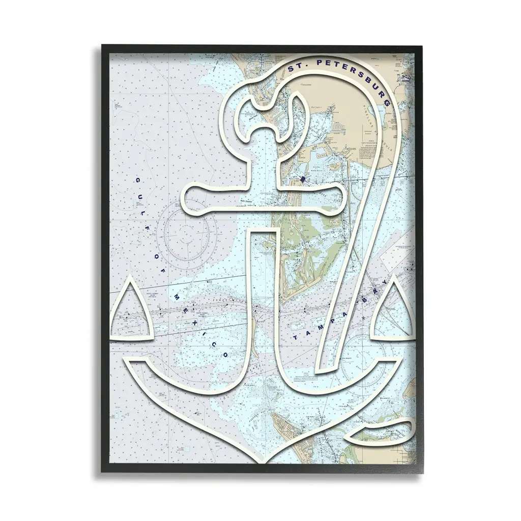 Stupell Detailed Map Tampa Bay Florida Anchor Symbol Framed Wall Art - Grey - 16 X 20 - Grey