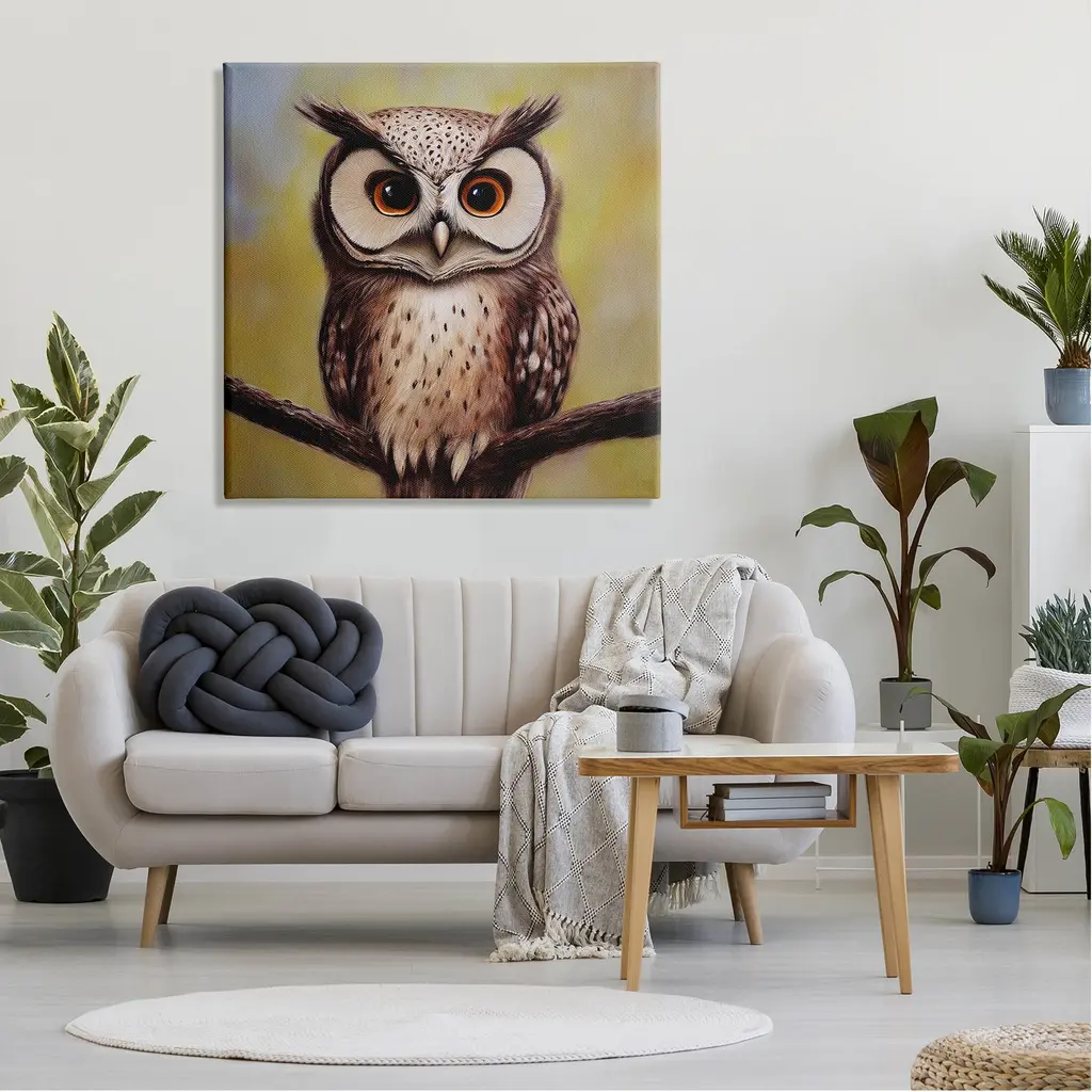 Proudly made in the USA, Our stretched canvas is created with the highest standards. We use only the highest quality inks and canvas on our in house Mimaki printers, and then hand cut and stretch each piece over a 1.5 inch thick wooden frame for hanging. The art comes ready to hang with no installation required.Features: Dimensions: 17 x 1.5 x 17 InchesStretched Canvas Sizes Include Standard: 17 x 1.5 x 17 Large: 24 x 1.5 x 24 X-Large: 30 x 1.5 x 30 Oversized: 36 x 1.5 x 36Wall Art is Ready to Hang - No Installation or Hardware Needed. For Easy Set Up Lean or Layer Artwork on Shelf or Against Wall.Our stretched canvas is created with the highest standards. We use only the highest quality inks and canvas on our in house Mimaki printers, and then hand cut and stretch each piece over a 1.5 inch thick wooden frame for hanging. Made In USA.Artwork Relates To: Bird, Animal, Owl, Beak, Nature, WildlifeDesign by Alpenglow Workshop
