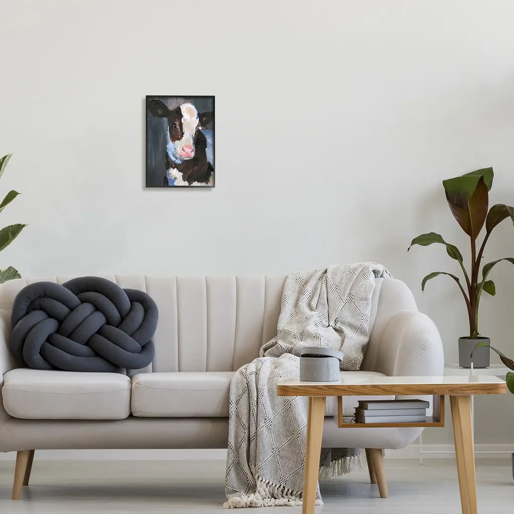 Stupell Detailed Painterly Country Cow Calf Cattle Portrait Framed Wall Art - Black - 11 X 14 - Black