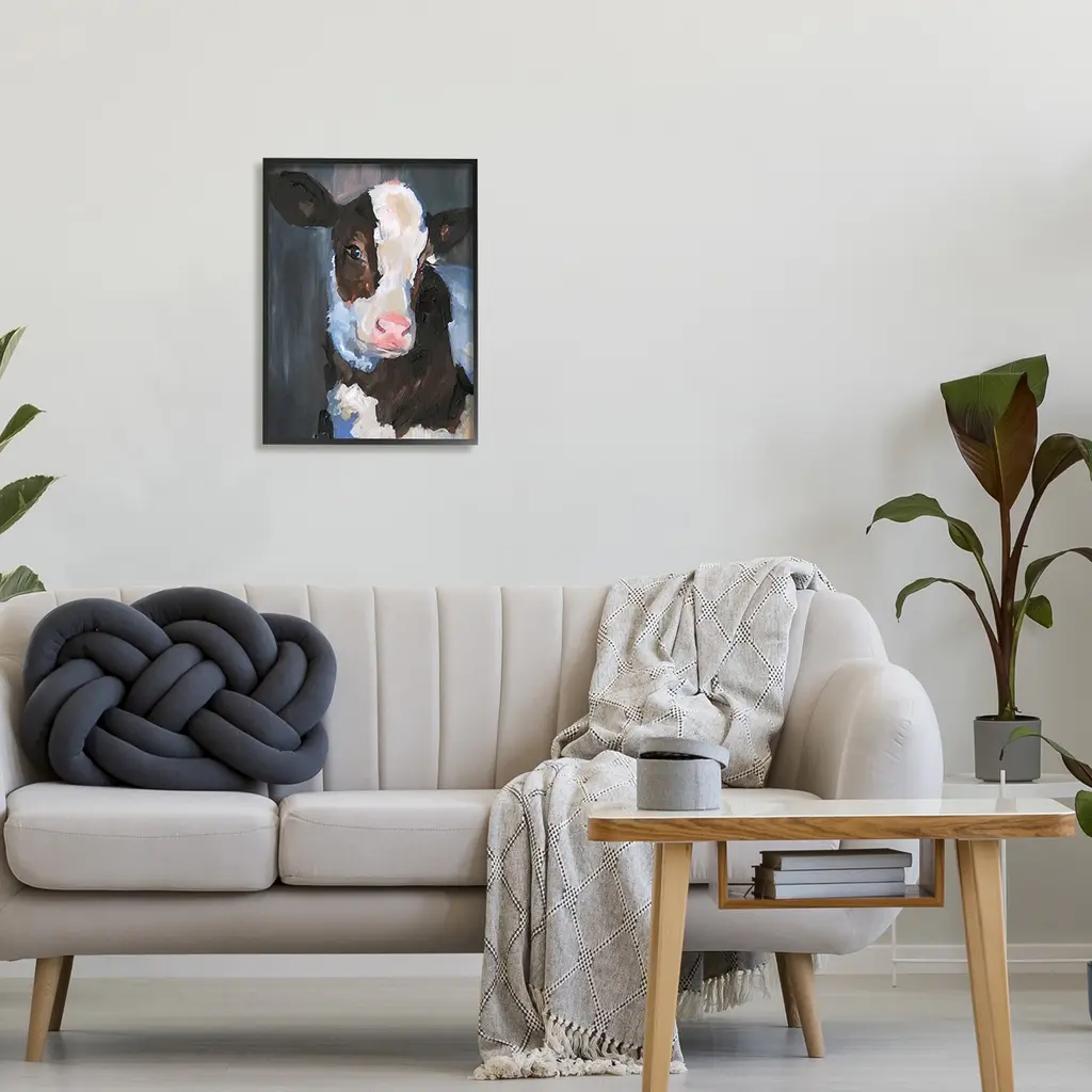 Stupell Detailed Painterly Country Cow Calf Cattle Portrait Framed Wall Art - Black - 16 X 20 - Black