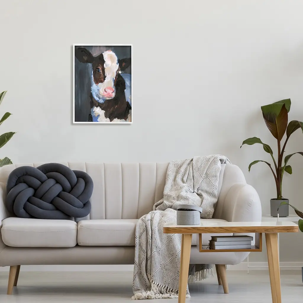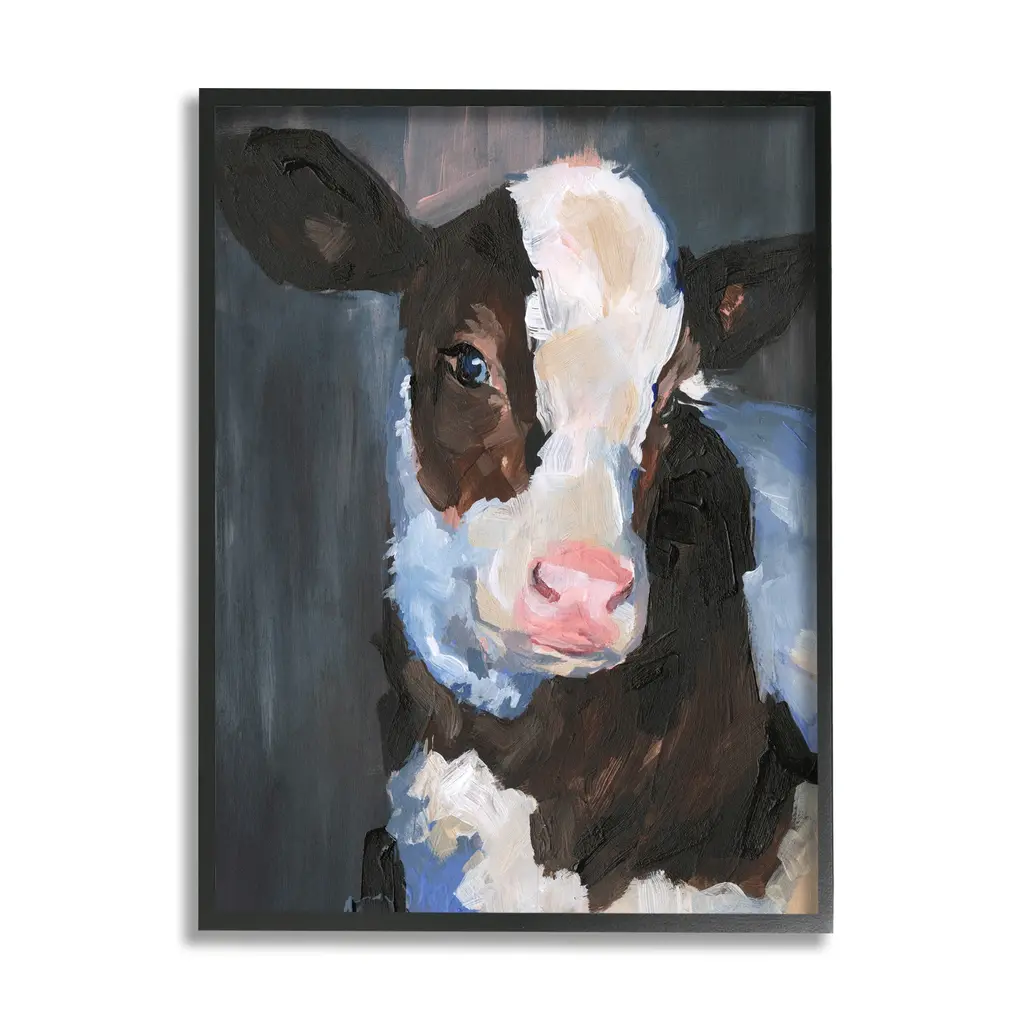 Stupell Detailed Painterly Country Cow Calf Cattle Portrait Framed Wall Art - Black - 16 X 20 - White
