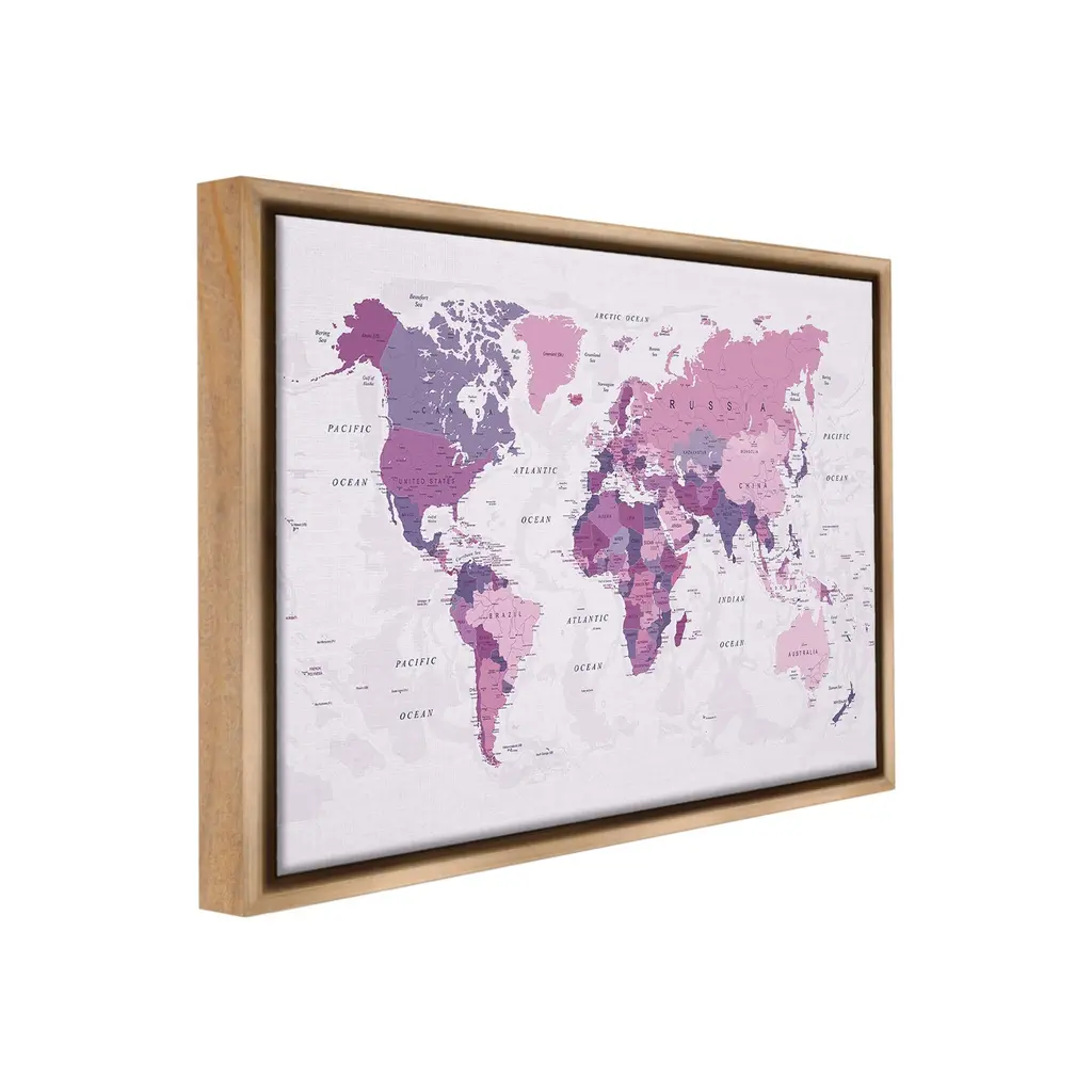 Stupell Detailed Pink World Map Framed Floater Canvas Wall Art Design By Urban Epiphant - 21 X 17 - Brown