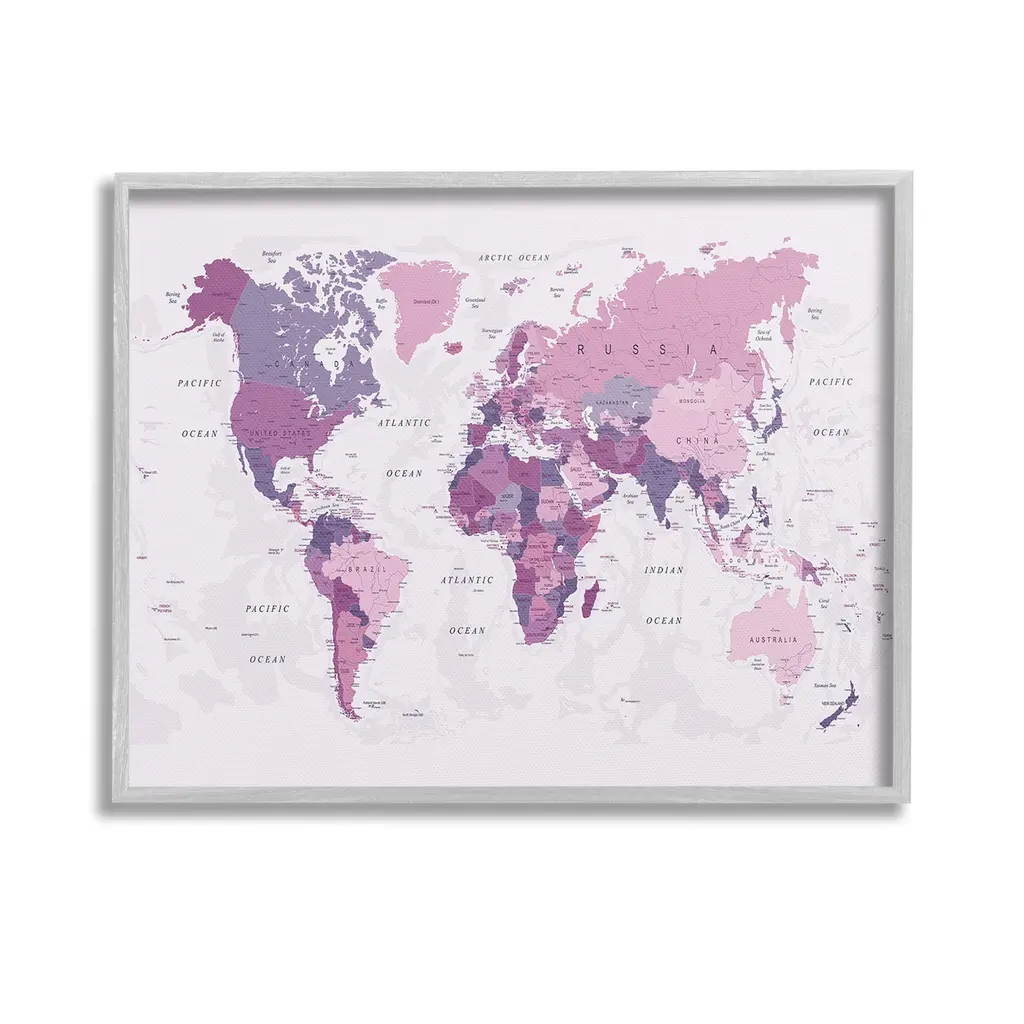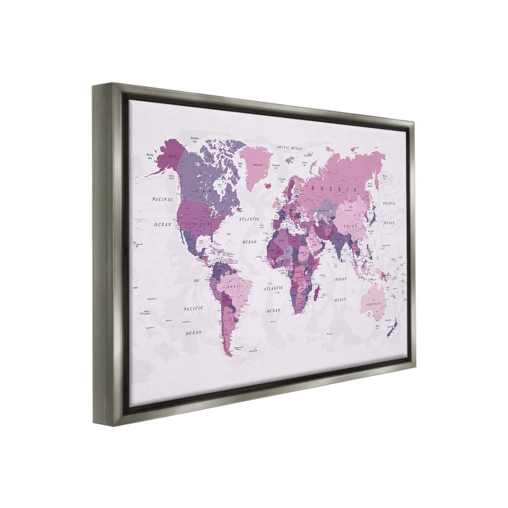 Stupell Detailed Pink World Map Framed Floater Canvas Wall Art Design By Urban Epiphant - 31 X 25 - Grey