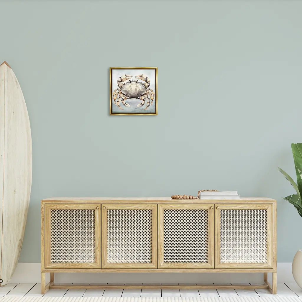 Elevate your home or office to the next level with Stupell Framed Floating Canvas Wall Art. Our premium hand-stretched canvas is mounted securely into a sturdy lightweight frame. The museum-style gap between the wrapped canvas and the box frame gives the illusion of floating artwork. Stupell Wall Art is made in the USA.Features: Dimensions: 18 x 1.7 x 18 Frame, 17 x 1.5 x 17 Canvas ArtFloating Frame Canvas Products are available in sizes 18"x18" and 25"x25". All Floating Frame Canvas Products have a 1.7" Depth.Wall Art is Ready to Hang with Hardware Free Hanging. No Installation required. For Easy Set Up Lean or Layer Artwork on Shelf or Against Wall. Artwork is Permently Fixed into the Frame.Our elevated 1.7" Thick Floating Frame is the perfect complement to our canvas style Wall Art. We use only the highest quality inks in house with industry leading printing solutions. Canvas is hand stretched over a durable wood foundation and then mounted securly into a Modern Box Frame. Made in the USA.Artwork Relates To: Seafood, Animal, Crab, Invertebrate, Sea Life, Nautical, MaritimeDesign by Nicole Decamp