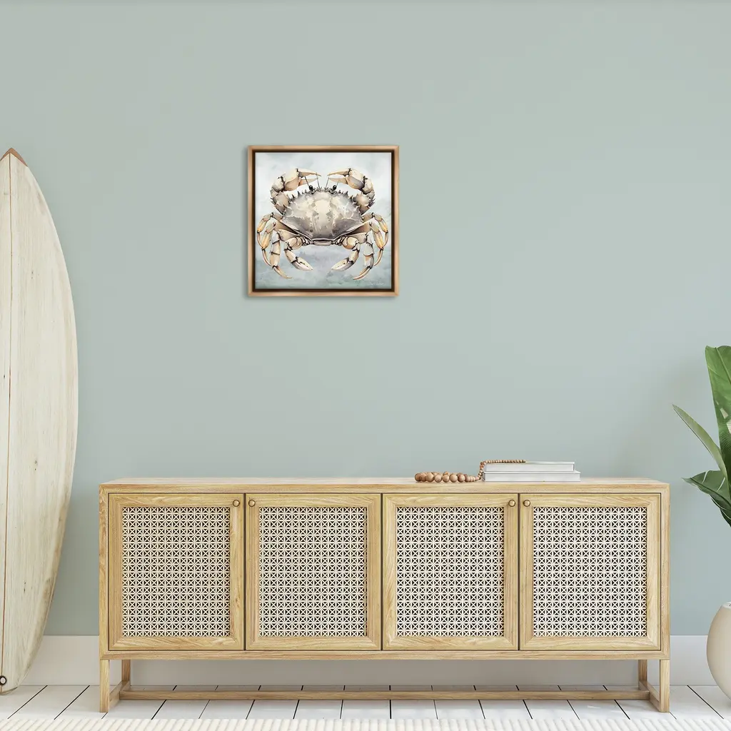 Elevate your home or office to the next level with Stupell Framed Floating Canvas Wall Art. Our premium hand-stretched canvas is mounted securely into a sturdy lightweight frame. The museum-style gap between the wrapped canvas and the box frame gives the illusion of floating artwork. Stupell Wall Art is made in the USA.Features: Dimensions: 18 x 1.7 x 18 Frame, 17 x 1.5 x 17 Canvas ArtFloating Frame Canvas Products are available in sizes 18"x18" and 25"x25". All Floating Frame Canvas Products have a 1.7" Depth.Wall Art is Ready to Hang with Hardware Free Hanging. No Installation required. For Easy Set Up Lean or Layer Artwork on Shelf or Against Wall. Artwork is Permently Fixed into the Frame.Our elevated 1.7" Thick Floating Frame is the perfect complement to our canvas style Wall Art. We use only the highest quality inks in house with industry leading printing solutions. Canvas is hand stretched over a durable wood foundation and then mounted securly into a Modern Box Frame. Made in the USA.Artwork Relates To: Seafood, Animal, Crab, Invertebrate, Sea Life, Nautical, MaritimeDesign by Nicole Decamp