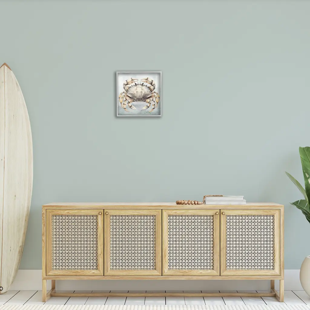 Add dimension to any room with our textured Framed Giclee Artwork. Our framed artwork is securely mounted into a 1.5-inch thick wood grain frame and ready to hang. Frames are available in three alluring styles: black, gray farmhouse and white. In addition, you should check out our oversized options if you want a statement piece. Stupell Wall Art is made in the USA.Features: Dimensions: 12 x 1.5 x 12 FramedFramed Giclee Product Sizes Include 12"x12", 17"x17", and 24"x24". Framed Giclee Products have a 1.5" Depth. Wall Art is Ready to Hang with Hardware Free Hanging. No installation required. For Easy Set Up Lean or Layer Artwork on Shelf or Against Wall.Our giclée prints are carefully mounted on a durable MDF backing, and then perfectly finished in a 1.5 inch thick woodgrain frame. Mounted frame colors include black, gray farmhouse and white. Made In USA.Artwork Relates To: Seafood, Animal, Crab, Invertebrate, Sea Life, Nautical, MaritimeDesign by Nicole Decamp