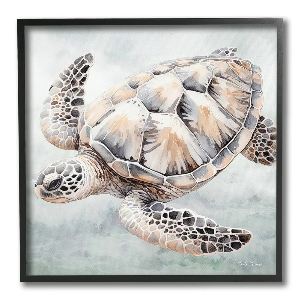 Add dimension to any room with our textured Framed Giclee Artwork. Our framed artwork is securely mounted into a 1.5-inch thick wood grain frame and ready to hang. Frames are available in three alluring styles: black, gray farmhouse and white. In addition, you should check out our oversized options if you want a statement piece. Stupell Wall Art is made in the USA.Features: Dimensions: 12 x 1.5 x 12 FramedFramed Giclee Product Sizes Include 12"x12", 17"x17", and 24"x24". Framed Giclee Products have a 1.5" Depth. Wall Art is Ready to Hang with Hardware Free Hanging. No installation required. For Easy Set Up Lean or Layer Artwork on Shelf or Against Wall.Our giclée prints are carefully mounted on a durable MDF backing, and then perfectly finished in a 1.5 inch thick woodgrain frame. Mounted frame colors include black, gray farmhouse and white. Made In USA.Artwork Relates To: Animal, Sea Life, Mammal, Turtle, Tortoise, Nautical, MaritimeDesign by Nicole Decamp
