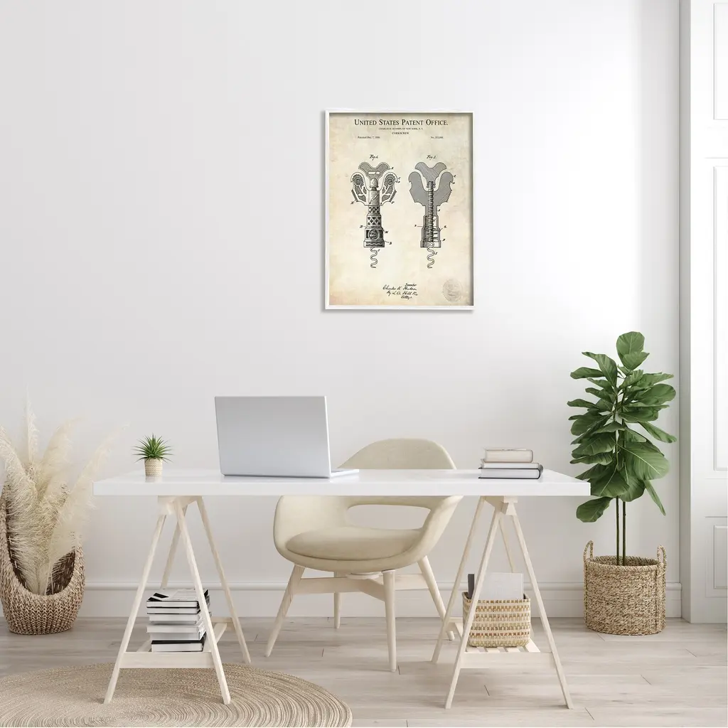 Stupell Detailed Vintage Bottle Corkscrew Patent Blueprint Diagram Framed Wall Art - Beige - 16 X 20 - Black