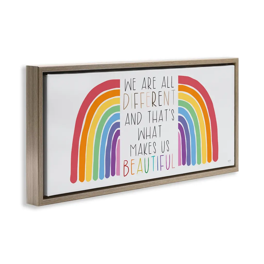 Stupell Different Is Beautiful Rainbow Framed Floater Canvas Wall Art Design By Lux + Me Designs - 31 X 14 - Brown