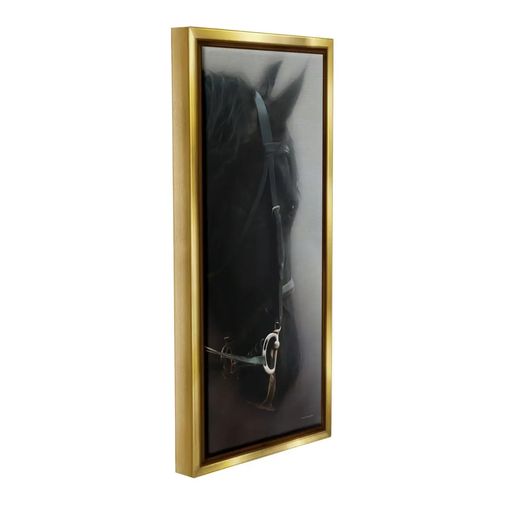 Stupell Dim Black Horse Portrait Framed Floater Canvas Wall Art Design By Kari Brooks - 14 X 31 - Gold