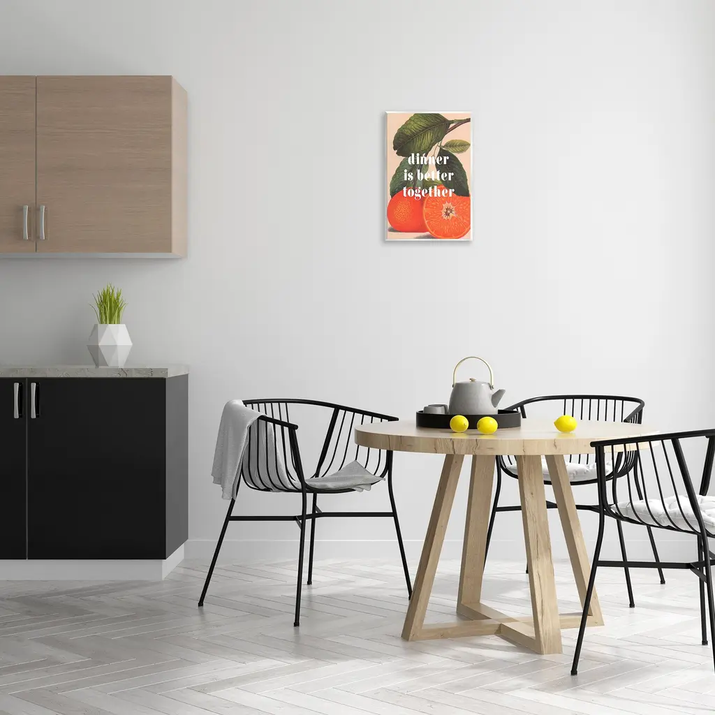 Our wall plaques start as high-quality lithograph prints mounted on durable 0.5-inch thick MDF wood. Each piece is hand finished and comes with a fresh layer of white foil on the sides to give it a crisp, clean look. Plaques arrive ready to hang without installation and come with removable plastic corners to keep them from damage in transit. Stupell Wall Art is made in the USA.Features: Dimensions: 10 x 0.5 x 15 InchesWall Plaque Product Sizes Include 10"x15" and 13"x19". All wall plaque products have a 0.5" Depth. Wall Art is Ready to Hang with Hardware Free Hanging. No installation required. For Easy Set Up Lean or Layer Artwork on Shelf or Against Wall.All of our wall plaques start off as high quality lithograph prints that are then mounted on durable 0.5 inch thick MDF wood. Each piece is hand finished and comes with a fresh layer of foil on the sides to give it a crisp clean look. Made In USA.Artwork Relates To: Citrus Fruit, Food, Fruit, Plant, Produce, Grapefruit, Dinner Is Better TogetherDesign by Lil' Rue