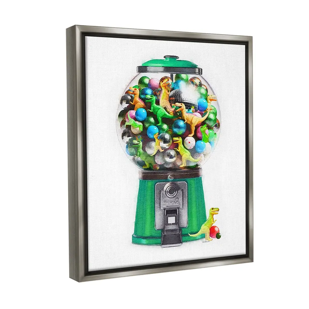Elevate your home or office to the next level with Stupell Framed Floating Canvas Wall Art. Our premium hand-stretched canvas is mounted securely into a sturdy lightweight frame. The museum-style gap between the wrapped canvas and the box frame gives the illusion of floating artwork. Stupell Wall Art is made in the USA.Features: Dimensions: 17 x 1.7 x 21 Frame, 16 x 1.5 x 20 Canvas ArtFloating Frame Canvas Products are available in sizes 17"x21" and 25"x31". All Floating Frame Canvas Products have a 1.7" Depth.Wall Art is Ready to Hang with Hardware Free Hanging. No Installation required. For Easy Set Up Lean or Layer Artwork on Shelf or Against Wall. Artwork is Permently Fixed into the Frame.Our elevated 1.7" Thick Floating Frame is the perfect complement to our canvas style Wall Art. We use only the highest quality inks in house with industry leading printing solutions. Canvas is hand stretched over a durable wood foundation and then mounted securly into a Modern Box Frame. Made in the USA.Artwork Relates To: Gumball Machine, Candy, Sweets, Vintage, Retro, Dinosaur, AnimalDesign by Amanda Greenwood