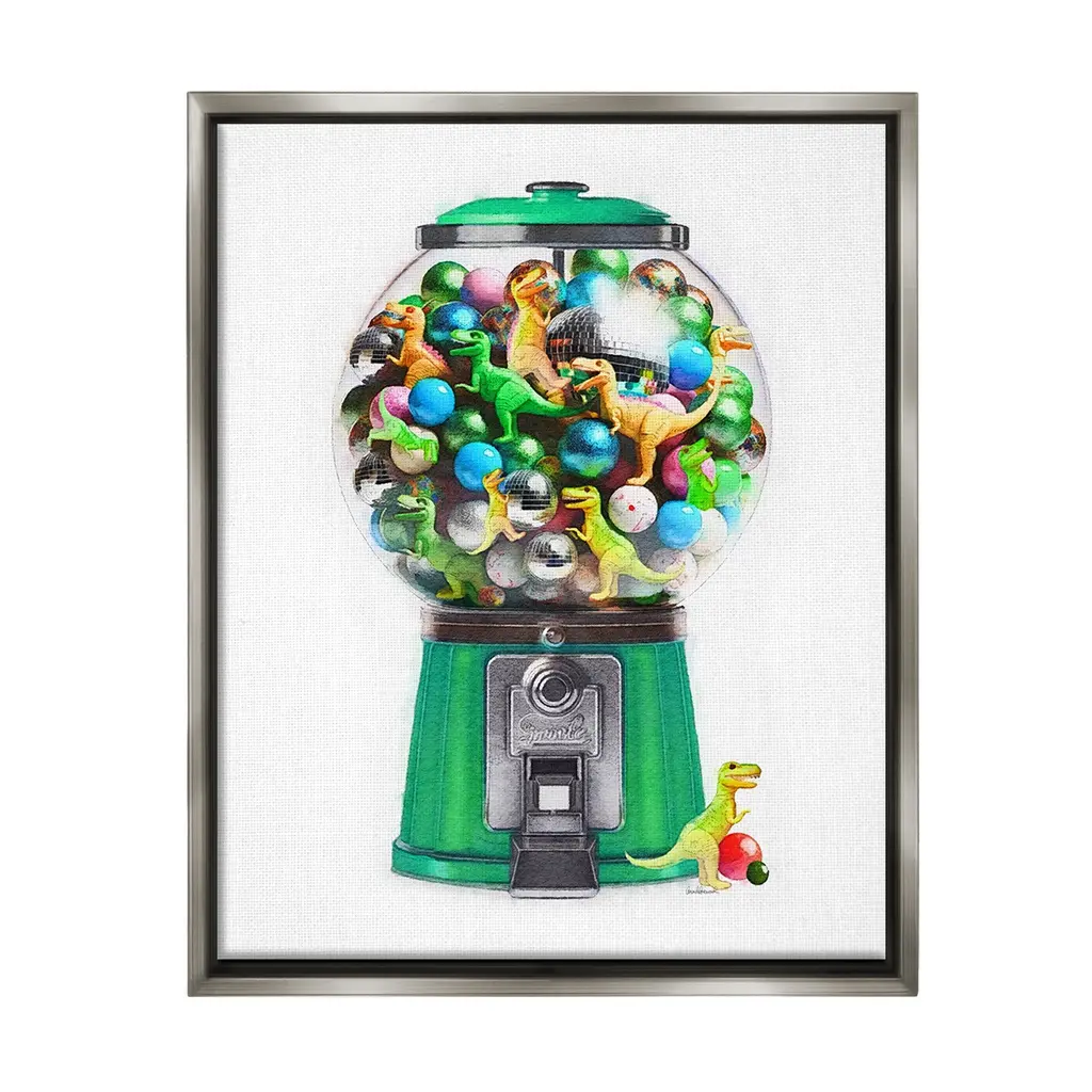 Add dimension to any room with our textured Framed Giclee Artwork. Our framed artwork is securely mounted into a 1.5-inch thick wood grain frame and ready to hang. Frames are available in three alluring styles: black, gray farmhouse and white. In addition, you should check out our oversized options if you want a statement piece. Stupell Wall Art is made in the USA.Features: Dimensions: 11 x 1.5 x 14 FramedFramed Giclee Products are available in the sizes 11"x14", 16"x20" or 24"x30". All Framed Giclee Products have a 1.5" Depth. Wall Art is Ready to Hang with Hardware Free Hanging. No installation required. For Easy Set Up Lean or Layer Artwork on Shelf or Against Wall.Our giclée prints are carefully mounted on a durable MDF backing, and then perfectly finished in a 1.5 inch thick woodgrain frame. Mounted frame colors include black, gray farmhouse and white. Made In USA.Artwork Relates To: Gumball Machine, Candy, Sweets, Vintage, Retro, Dinosaur, AnimalDesign by Amanda Greenwood