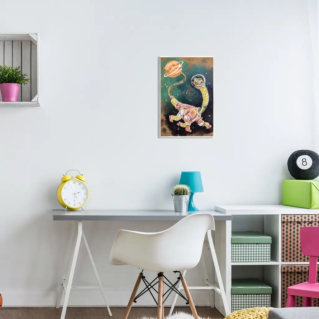 Our wall plaques start as high-quality lithograph prints mounted on durable 0.5-inch thick MDF wood. Each piece is hand finished and comes with a fresh layer of white foil on the sides to give it a crisp, clean look. Plaques arrive ready to hang without installation and come with removable plastic corners to keep them from damage in transit. Stupell Wall Art is made in the USA.Features: Dimensions: 10 x 0.5 x 15 InchesWall Plaque Sizes Include Standard: 10 x 0.5 x 15 Oversized: 13 x 0.5 x 19Wall Art is Ready to Hang with Hardware Free Hanging. No installation required. For Easy Set Up Lean or Layer Artwork on Shelf or Against Wall.All of our wall plaques start off as high quality lithograph prints that are then mounted on durable 0.5 inch thick MDF wood. Each piece is hand finished and comes with a fresh layer of foil on the sides to give it a crisp clean look. Made In USA.Artwork Relates To: Painting, Dinosaur, Planet, Outer Space, Nebula, Stars, ModernDesign by Nidhi Wadhwa