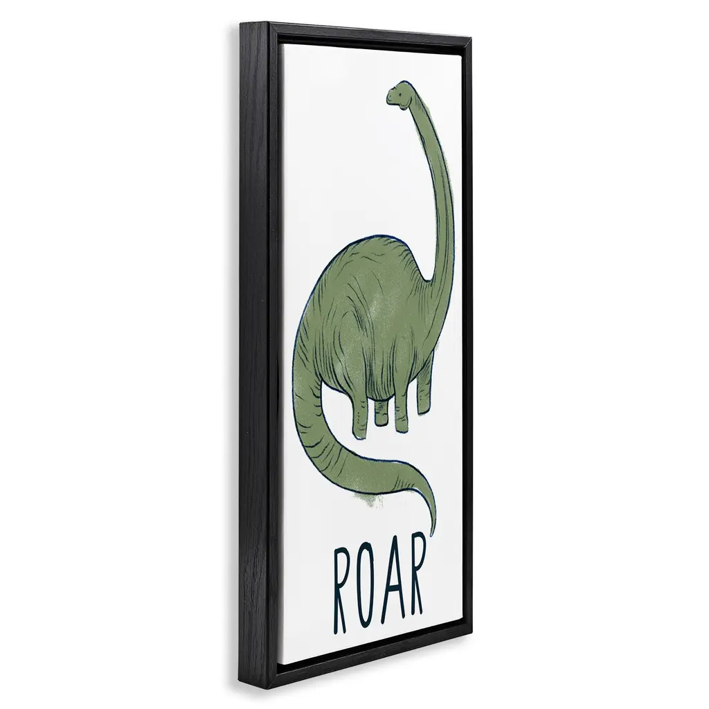 Elevate your home or office to the next level with Stupell Framed Floating Canvas Wall Art. Our premium hand-stretched canvas is mounted securely into a sturdy lightweight frame. The museum-style gap between the wrapped canvas and the box frame gives the illusion of floating artwork. Stupell Wall Art is made in the USA.Features: Dimensions: 11 x 1.7 x 25 Frame, 10 x 1.5 x 24 Canvas ArtFloating Frame Canvas Products are available in sizes 11"x25" and 14"x31". All Floating Frame Canvas Products have a 1.7" Depth.Wall Art is Ready to Hang with Hardware Free Hanging. No Installation required. For Easy Set Up Lean or Layer Artwork on Shelf or Against Wall. Artwork is Permently Fixed into the Frame.Our elevated 1.7" Thick Floating Frame is the perfect complement to our canvas style Wall Art. We use only the highest quality inks in house with industry leading printing solutions. Canvas is hand stretched over a durable wood foundation and then mounted securly into a Modern Box Frame. Made in the USA.Artwork Relates To: Animal, Dinosaur, Kids, Phrase, MinimalDesign by Daphne Polselli