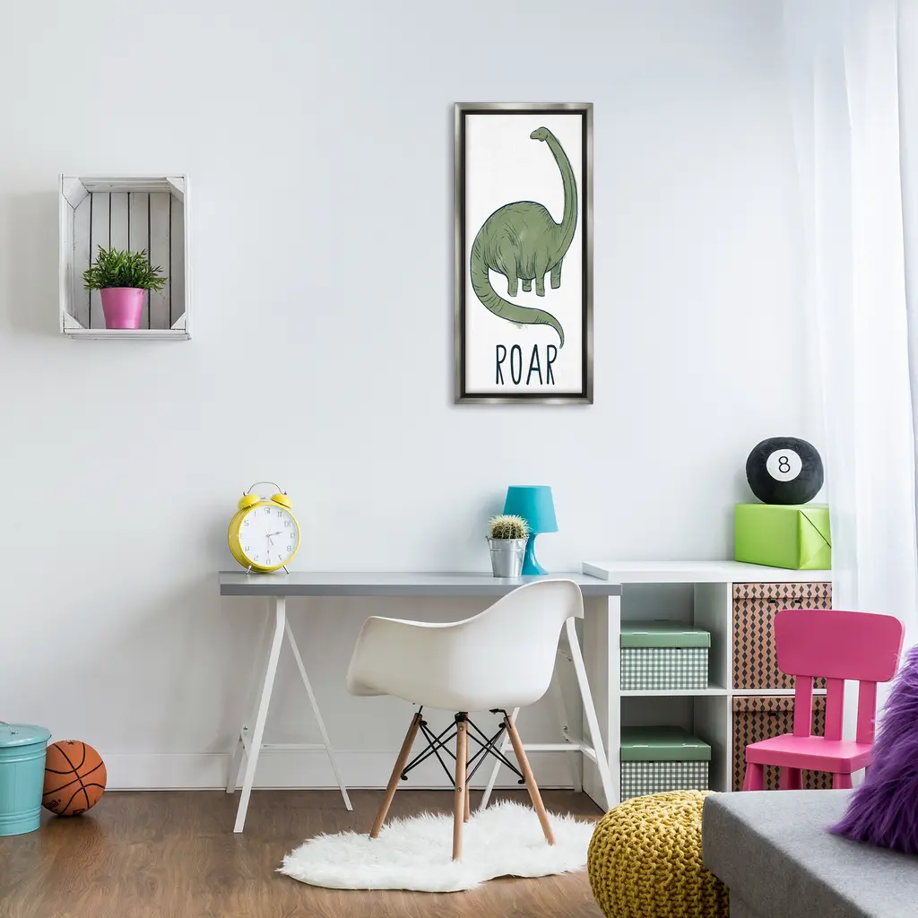 Stupell Dinosaur Roar Brachiosaurus Framed Floater Canvas Wall Art Design By Daphne Polselli - 14 X 31 - Grey