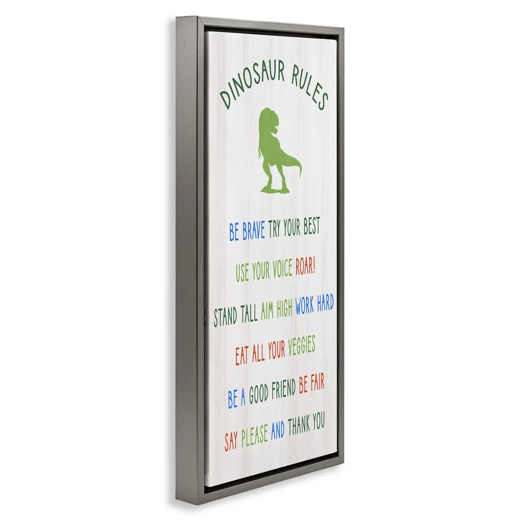 Stupell Dinosaur Rules Kids List Framed Floater Canvas Wall Art Design By Daphne Polselli - 11 X 25 - Grey